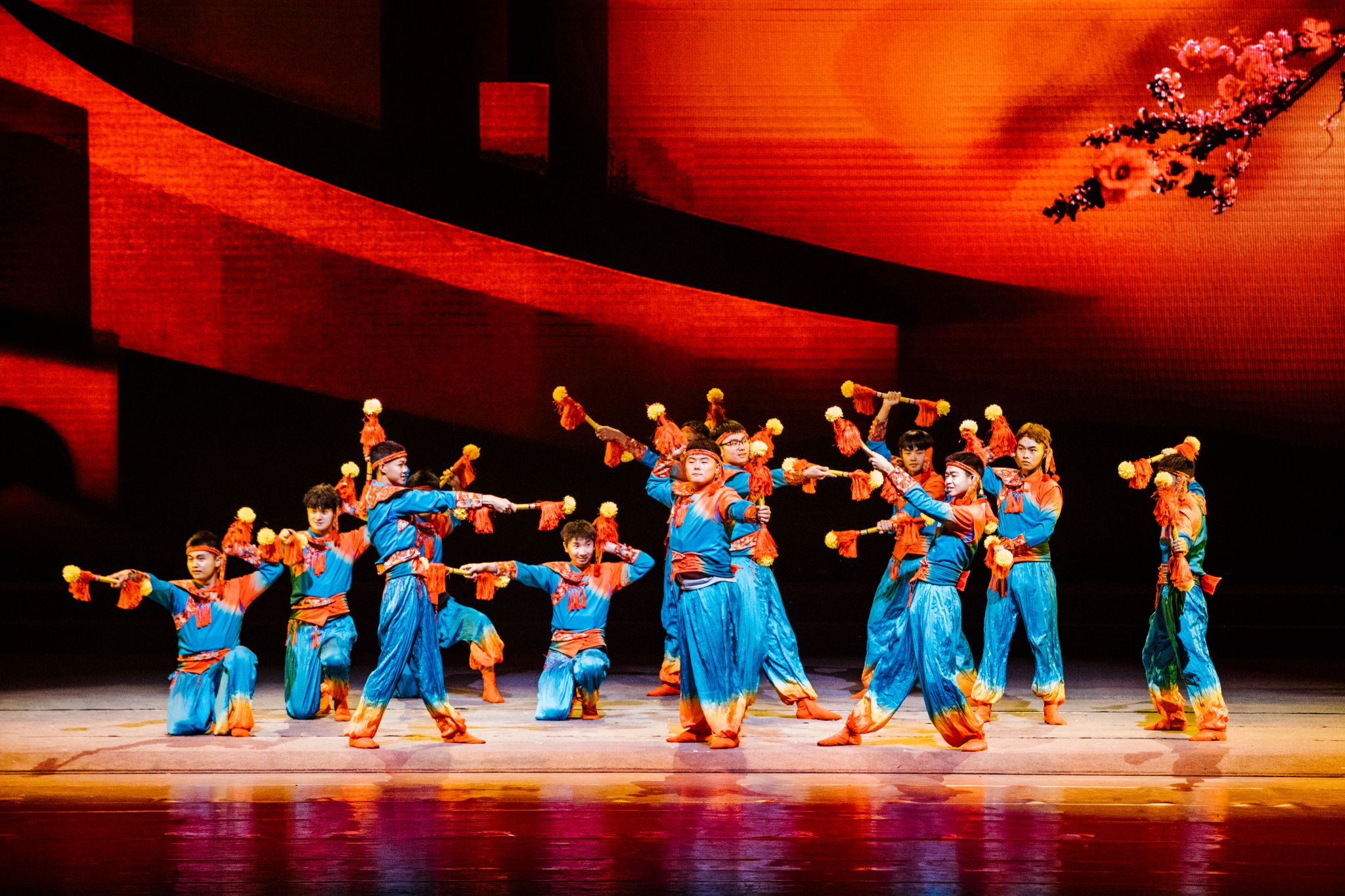 文艺演出共有23个节目分为序篇《追光》、上篇《点亮・心灵之光》、下篇《汇聚・梦想之光》以及尾声《沐光》四个部分,我校作品《海棠花开一路红》在下篇《汇聚・梦想之光》精彩亮相,当朦胧的灯光印在28名听障学生和4名指挥身上时,那自信的微笑、火红的服装、精美的造型配上整齐的“莲萧”惊艳全场。当音乐响起的那一刻,同学们以专业、整齐的动作,在欢快的节奏中展现了乐师学子眼里有光、自立自强的文化自信,赢得了现场持久热烈的掌声。