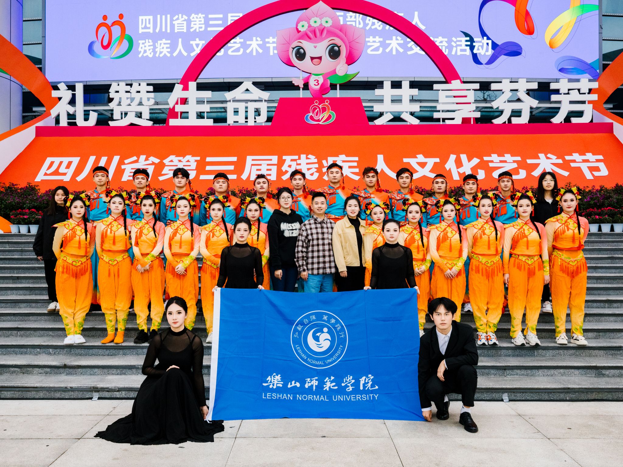 本网讯(文/梁靖怡 图/张皓)10 月 29 日,一场艺术与人文的盛宴——四川省第三届残疾人文化艺术节在南充盛大开幕。在这场以“礼赞生命・共享芬芳”为主题的盛会中,我校舞蹈《海棠花开一路红》作为特邀嘉宾璀璨亮相,以无声的语言,演绎生命的强音,展现了乐师学子不屈不挠、勇于追梦的精神风貌。