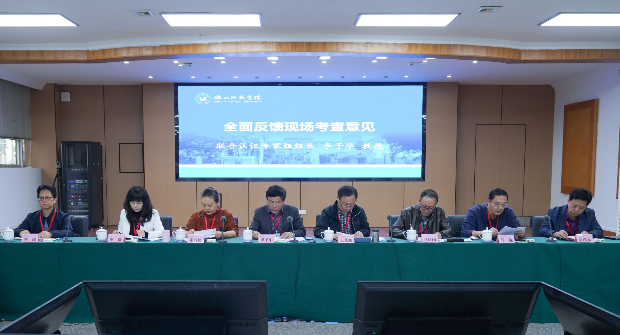 李子华教授代表联合认证组全面反馈现场考查意见。他指出,学校坚持以师范教育为本体,以应用型专业和艺体类专业为两翼,着力培养一流应用型本科人才。学校高度重视师范生人才培养工作,加强统筹规划,整体推进专业对标建设。一是主动适应新时代基础教育新变化,系统推进教师教育综合改革。不断强化教师教育改革顶层设计,持续改进人才培养方案、课堂教学与实践教学,提升办学经费、师资队伍、教学资源等条件保障。二是聚焦教师职业能力需求,全面加强师范生实践能力培养,重视师范技能训练,着力培养学生创新实践能力。三是坚持以美育人。提升学生艺术素养。构建了面向“全体学生、艺术特长生、艺术尖子生”的艺术教育体系,打造了学校艺术教育的人才培养名片。四是发挥特殊教育优势,助推教育公平,积极推进融合教育。近年来,学校主动对接区域经济社会发展,构建了“林竹科技创新产业研究院”“乐山西部硅材料光伏新能源产业研究院”“乡村振兴研究院”“峨眉山研究院”“大渡河流域研究院”等体现乐山特色的科学研究机构和资源平台。