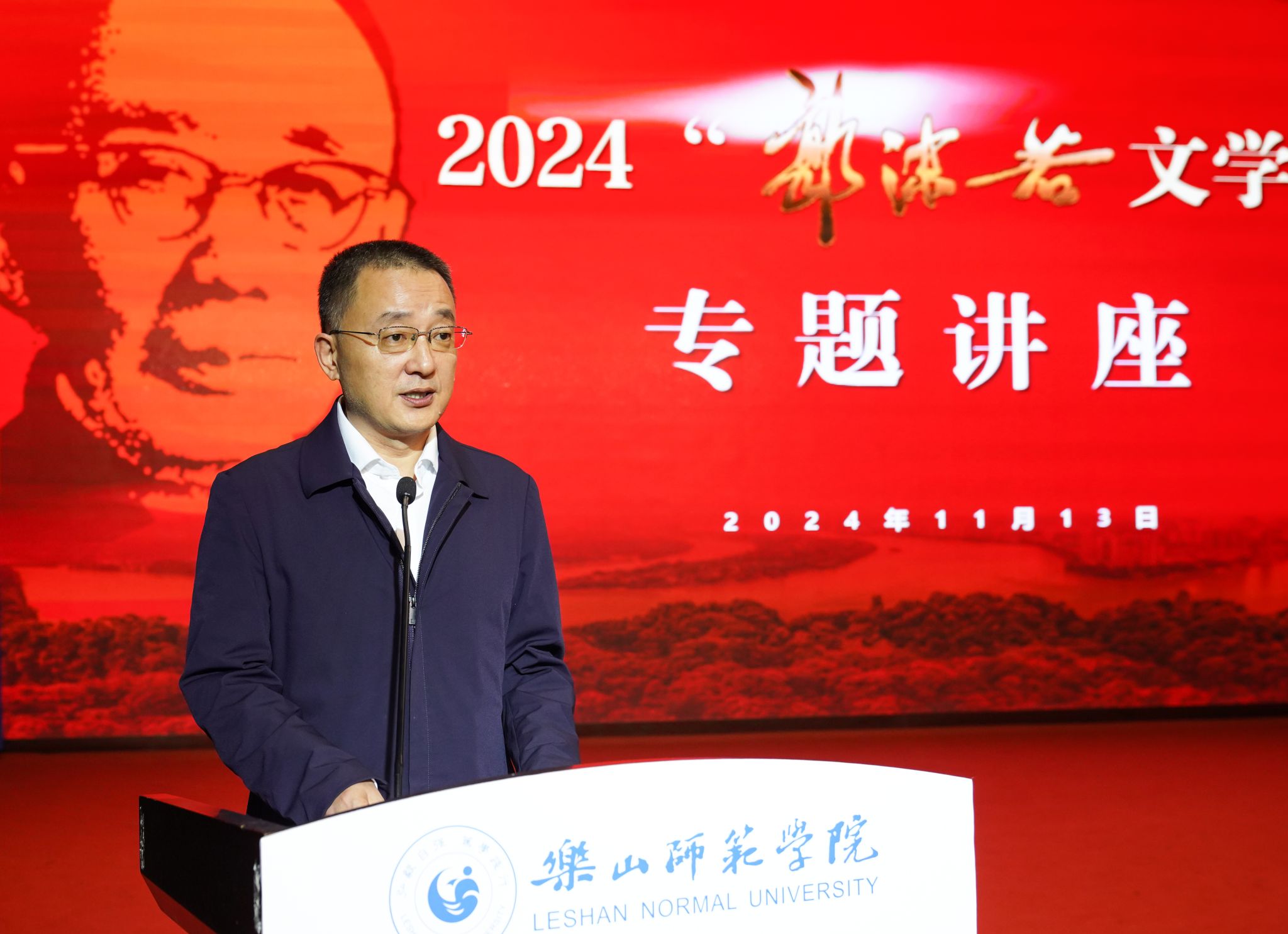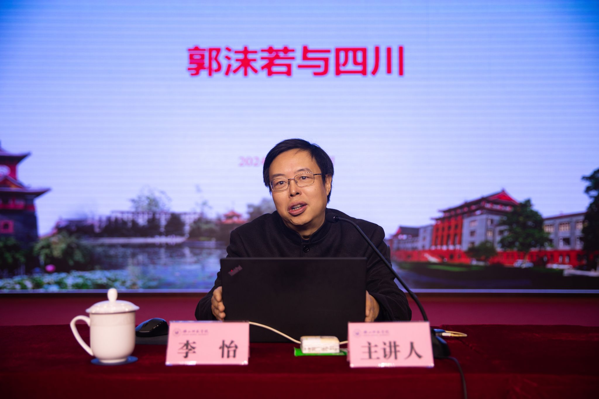 四川省作家协会副主席、中国现代文学研究会副会长、中国郭沫若研究会副会长、四川大学文学与新闻学院院长李怡教授为大家带来讲座《郭沫若与四川》。他聚焦于郭沫若先生与四川、与乐山这片土地的深厚渊源,从地域文化的角度阐述了郭沫若先生的文学创作与四川、与乐山的千丝万缕的联系,让聆听者深切领悟了家乡的风土人情对郭沫若先生文学艺术风格形成的重要影响。