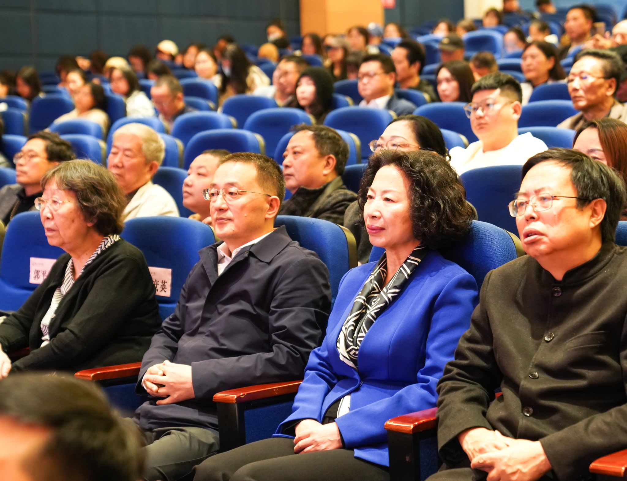 郭沫若亲属代表,乐山市级部门有关负责同志、乐山市教育系统师生代表、乐山市文艺界代表和我校师生代表聆听了讲座。