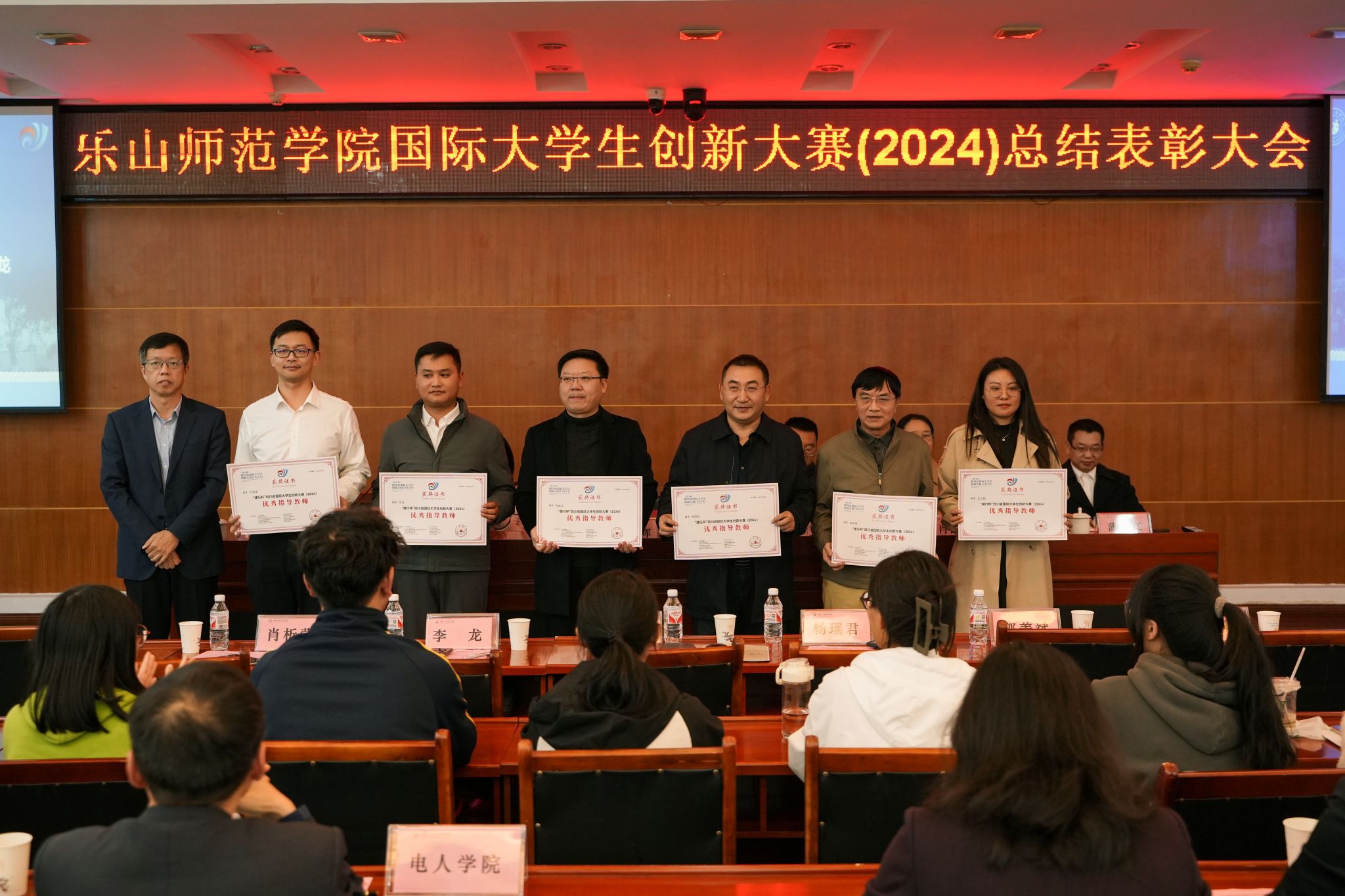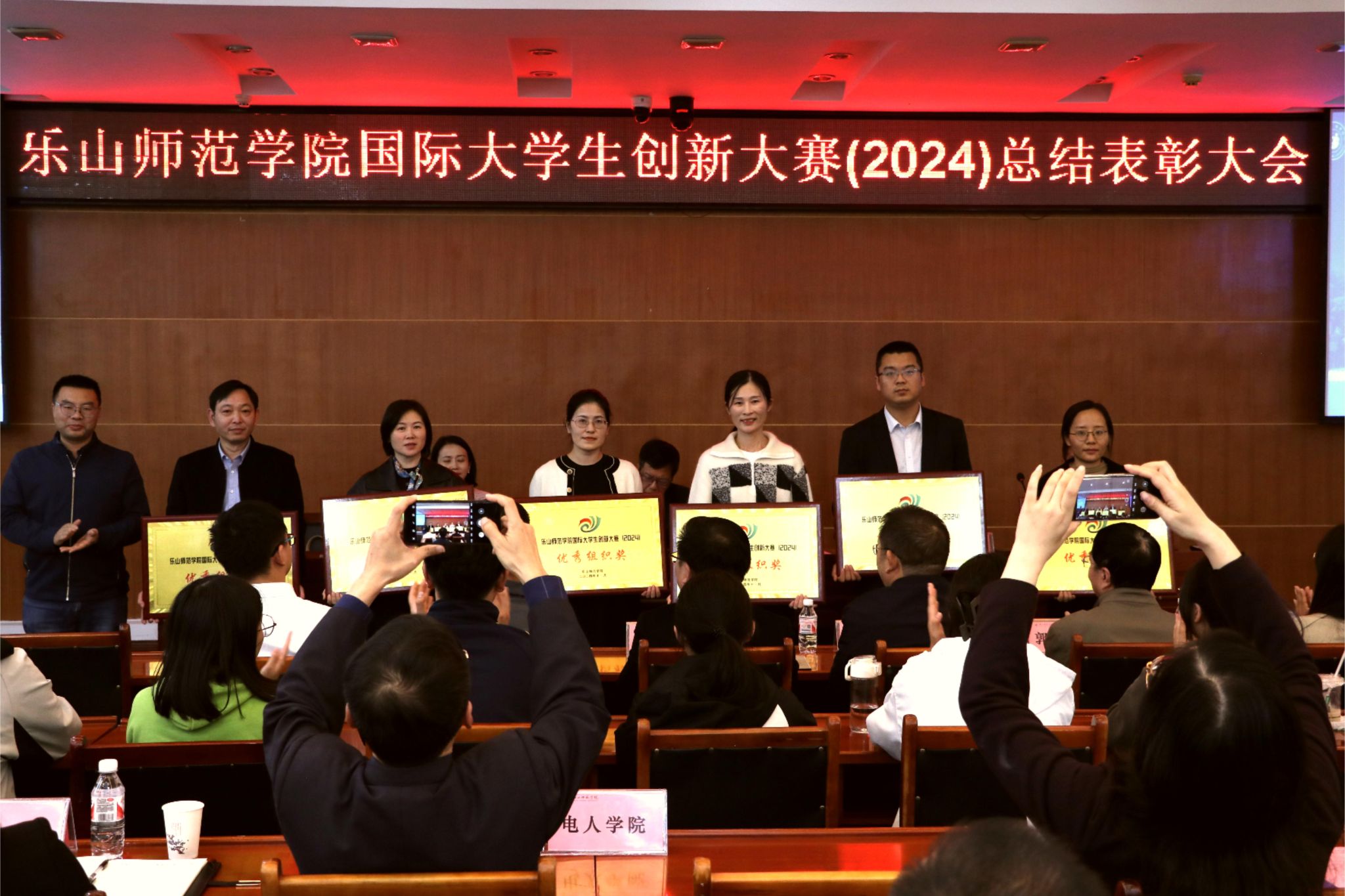 颁奖典礼向获得四川省国际大学生创新大赛(2024)金、银、铜奖的项目代表、优秀指导老师代表和优秀组织奖单位颁发了奖状。我校共荣获省级金奖4项、银奖9项、铜奖26项,杨瑶君、曹成全、郭美斌等六位教师荣获“优秀指导教师”荣誉称号,生命科学学院、新能源材料与化学学院、电子信息与人工智能学院等六个学院获得优秀组织奖。