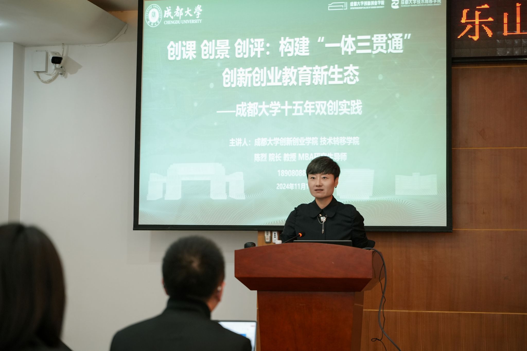 陈烈结合成都大学双创教育实践的宝贵经验,从创新创业的时代内涵、创新创业的生态体系、创新创业教育与"三位一体"等方面,作《创课、创景、创评构建“一体三贯通”创新创业教育新生态》主题讲座。