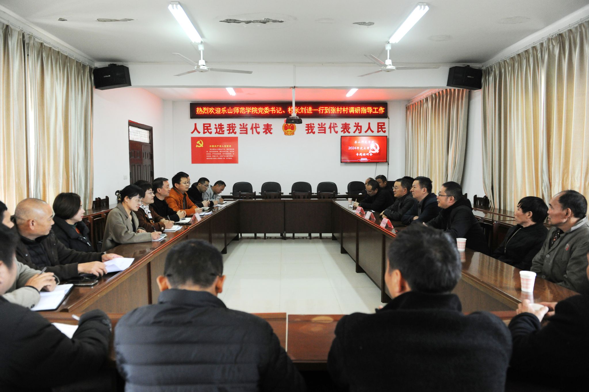 刘进看望慰问了我校六名驻村帮扶干部,详细了解他们的工作生活情况。刘进鼓励他们在工作中一定要积极思考、主动作为,珍惜基层锻炼机会,与村两委团结协作,不断改善村民生活,巩固帮扶工作成效,为校地合作打下坚实的基础。同时,在帮扶工作中,一定要注意自身安全,工作上要再接再厉,为地方乡村振兴做出更大贡献。在村委会的座谈会上,刘进结合帮扶工作实际,给乡镇、村组干部、群众代表及驻村工作队员上了一堂简洁而生动的党课。刘进强调,大家要把学习贯彻党的二十届三中全会精神和省委十二届六次全会精神与农村基层工作结合起来,进一步凝聚思想伟力、求真务实,要学有所得、学有所思、学有所动,以党建为引领,推动校地双方紧密协作,共同促进地方经济社会发展。