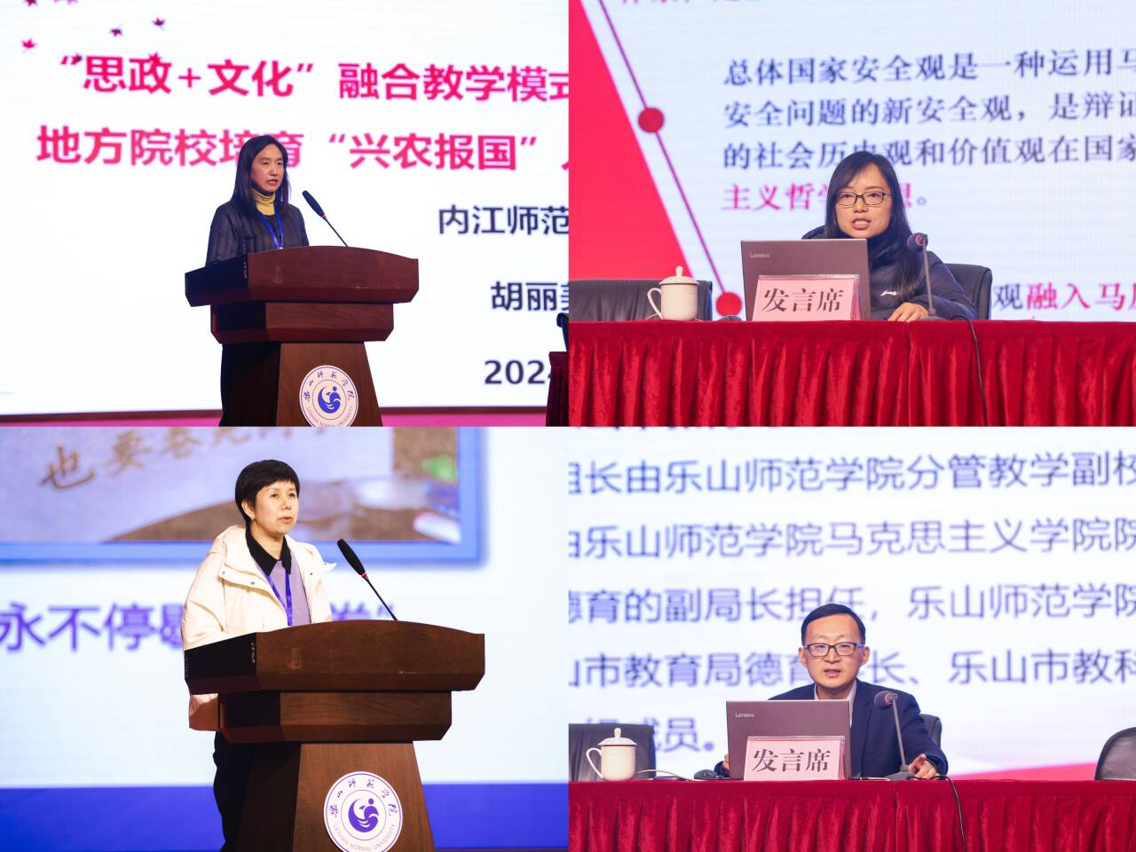 胡丽美在题为《“思政”+“文化”融合教学模式创新:培育地方院校“兴农报国”人才路径探索》的发言中,从内江市“农文旅”融合发展状况、内江师范学院思政课程的教学模式以及乡村振兴融入教学等情况向大家作了深入系统的介绍。杜伟在题为《二十届三中全会的国家安全论述融入“原理”课的方法与路径》的发言中,从总体国家安全观的发展脉络、特征、核心要义、宗旨四个方面出发,具体介绍了将总体国家安全观融入马克思主义基本原理课程教学的重要意义和方法。郭芙蕊作了题为《原理课教学中的心灵滋养》的发言,她围绕“原理课教学中心灵滋养的现实需求”“原理课教学中心灵滋养的成电做法”两个方面,介绍了电子科技大学在思政课教学中关注学生的真才实学、真心真意、真情实感的具体做法,使思政课建设成为培养学生个性、滋养学生心灵的优质课程。赖伟作了题为《校地协作共建思政课大中小学一体化共同体》的发言,介绍了乐山师范学院在构建有效的大中小学思政课一体化工作机制、形成可操作性的大中小学思政课一体化工作方案等工作中的具体情况,并提出了在这些工作中存在的问题和下一步工作安排。
