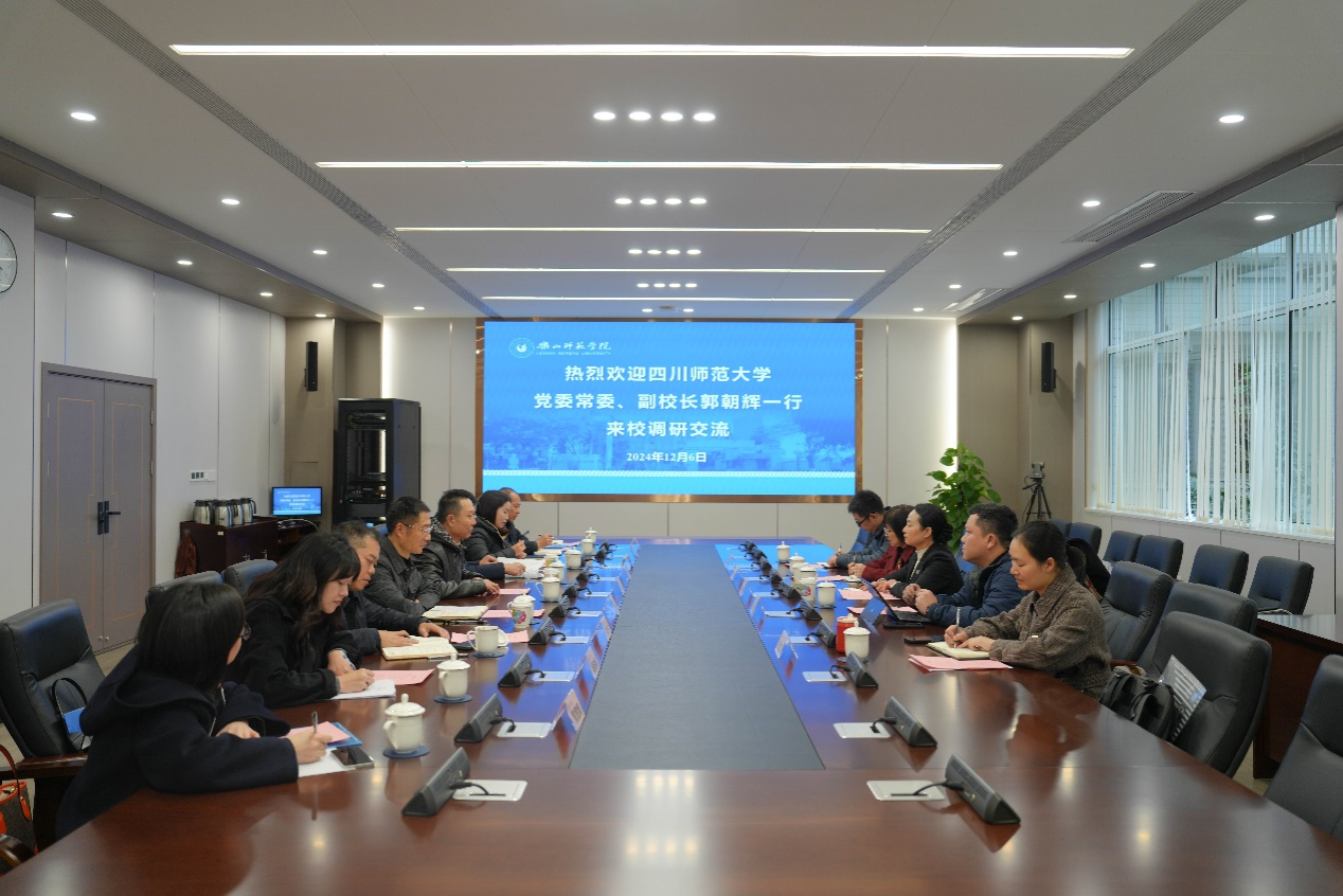 本网讯(文图/杨爽)12月6日,四川师范大学副校长、工会主席郭朝辉一行来我校调研交流,市总工会党组书记、常务副主席郑强,市总工会党组成员、副主席汪毅娟等市总工会领导班子成员陪同调研。学校党委副书记、工会主席陈立志出席并致辞,我校相关部门负责人参加了座谈交流。