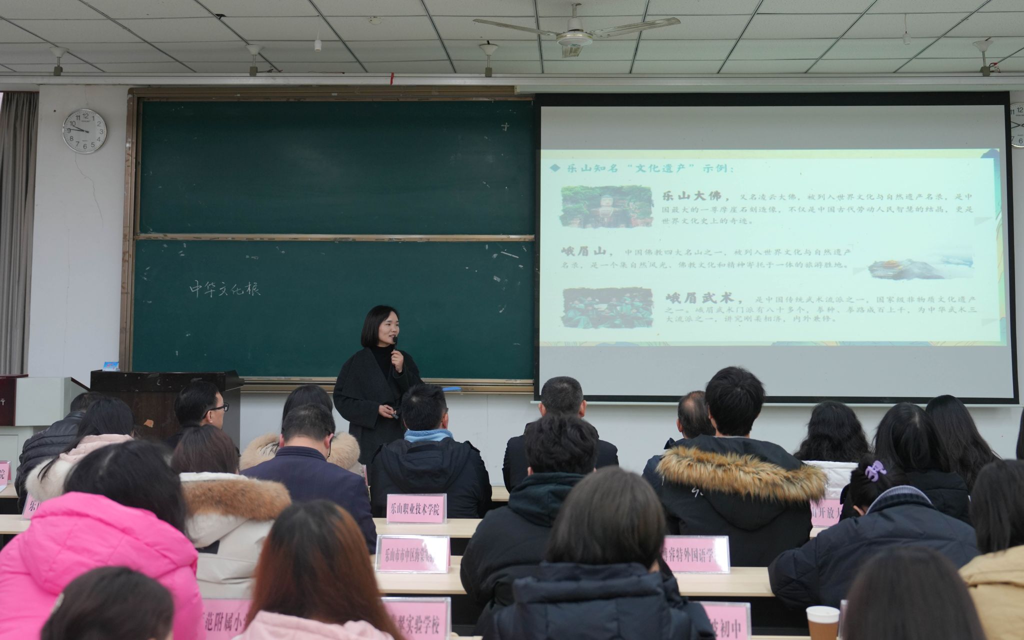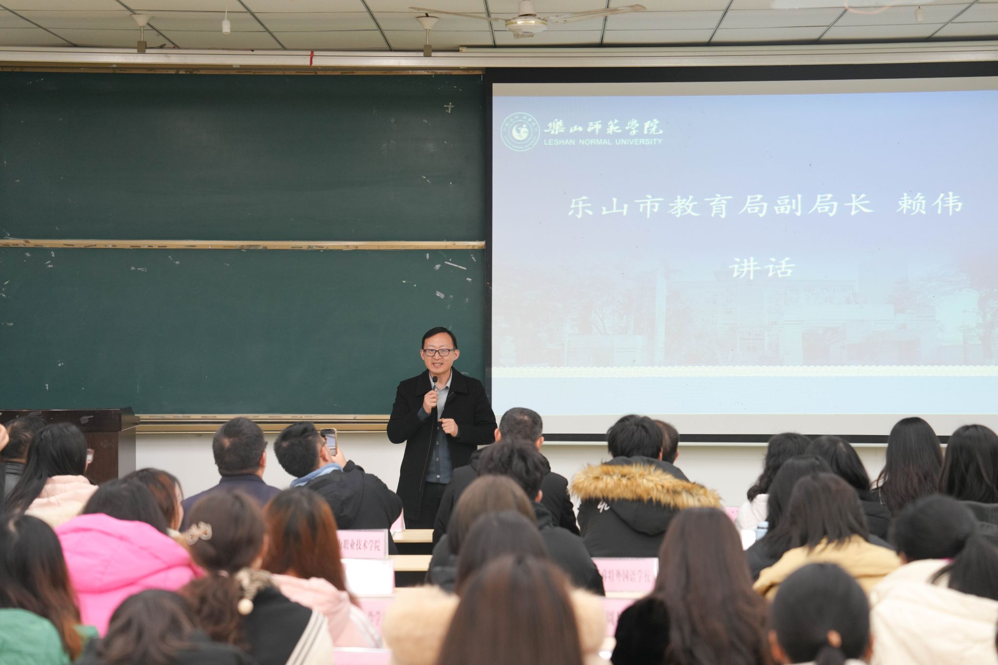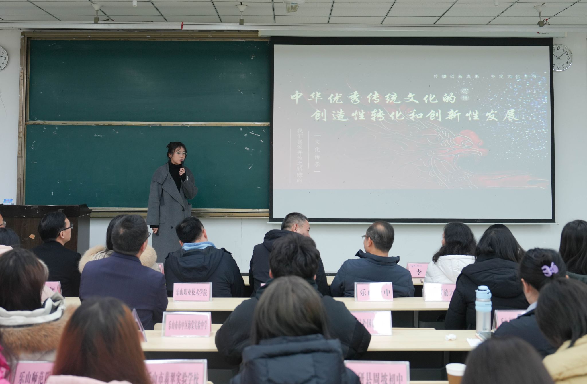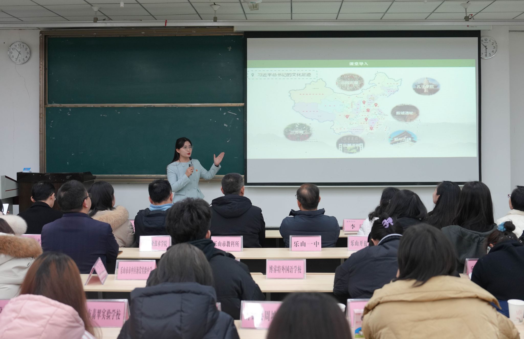 本网讯(文/吴雨、图/杨爽)12月13日上午,乐山市2024年“习近平文化思想融入大中小学思政课”同课异构教学研讨会暨基础教育论坛在我校顺利举行。四川师范大学马克思主义学院院长陈驰、乐山师范学院马克思主义学院院长郑文杰、乐山师范学院马克思主义学院党委书记李涛、乐山师范学院马克思主义学院党委副书记钟永淑、乐山师范学院马克思主义学院副院长(挂职乐山市教育局副局长)赖伟、四川科技职业学院马克思主义学院党委书记谢萌、乐山职业技术学院马克思主义学院副院长刘倩,以及全市各幼小初高学段思政教师代表齐聚一堂,共同探讨思政教育的创新发展。乐山师范学院马克思主义学院部分教师与学生代表100余人参与了此次研讨会。