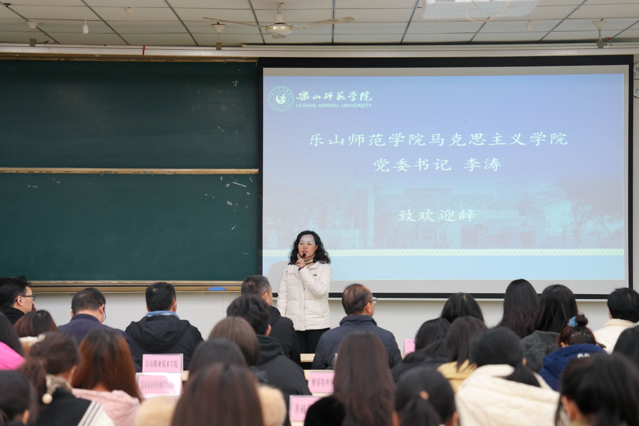 会议开始,乐山师范学院马克思主义学院党委书记李涛致欢迎辞。李涛书记指出,此前由乐山师范学院作为牵头单位,乐山市教育局等10家单位参与的“乐山市大中小学思政课一体化共同体”,被四川省委教育工委、四川省教育厅批准立项为“四川省大中小学思政课一体化共同体”,这为更好地推动全市大中小学思政课一体化建设打下了坚实基础,欢迎各位专家以及老师再次共创乐山市大中小思政一体化建设新成果。乐山师范学院马克思主义学院副院长(挂职乐山市教育局副局长)赖伟也表示此次研讨会的召开也是继续推进全市大中小思政一体化建设的延续,研讨会聚焦于将习近平文化思想有机融入思政教学,旨在提升思政课的思想性、理论性与亲和力、针对性,对于提升全市范围内各学段思想政治课程的整体教育水平十分重要。
