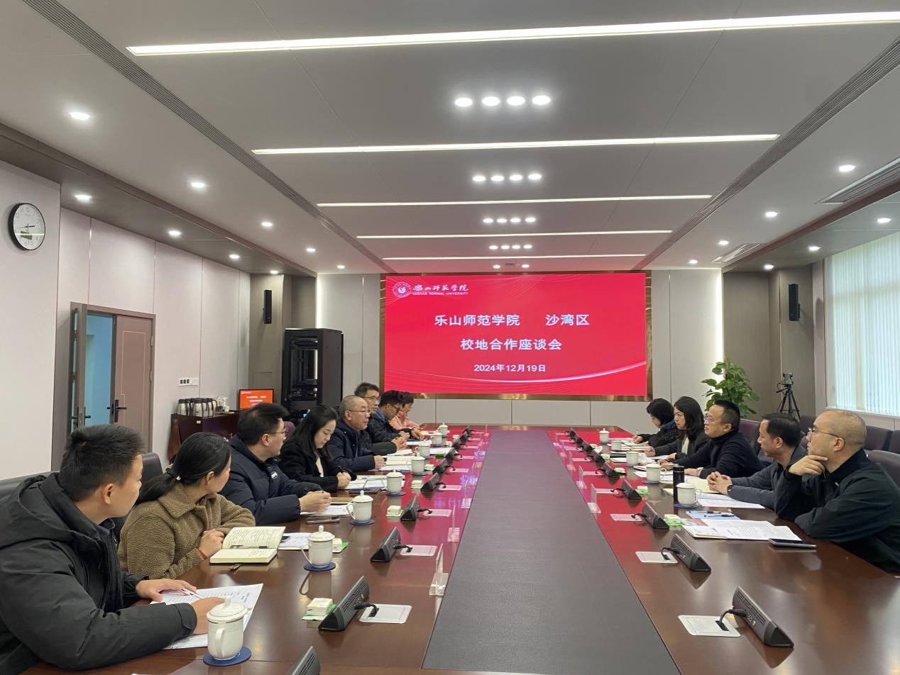 本网讯(文图/罗晓娟)12月19日下午,乐山市沙湾区副区长杨宇率区教育局、文化广电体育旅游局、旅游景区服务中心等单位负责人,来我校洽谈校地合作。学校校地合作处、继续教育学院、旅地学院、体育学院、郭沫若研究中心、沫若图书馆等部门和教学院的负责人及相关人员参加座谈与交流。