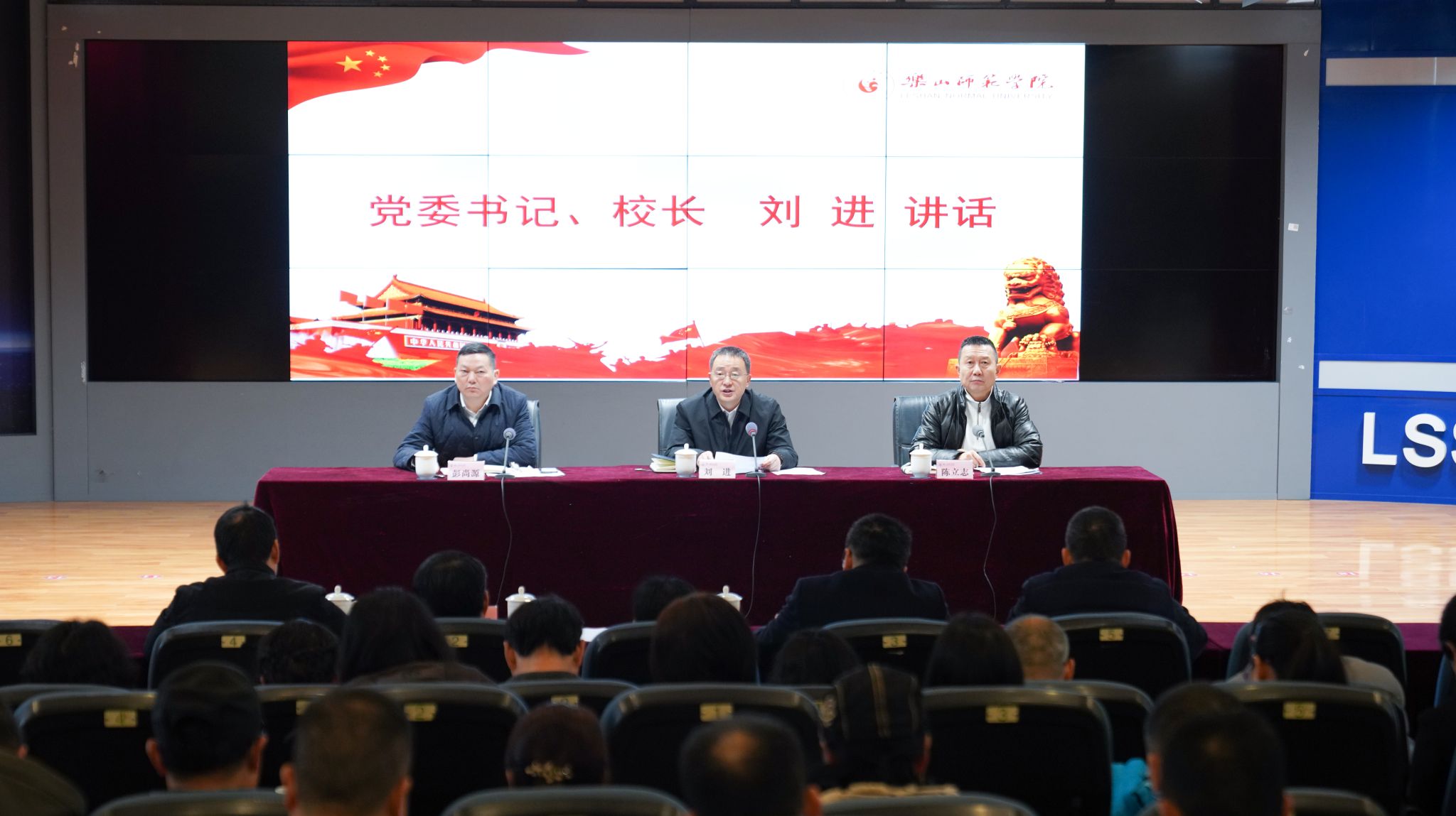 刘进以“坚持用改革精神和严的标准管党治党以全面从严治党新成效引领保障学校事业高质量发展”为题,总结了2024年全面从严治党工作的新成绩,精准分析了2025年全面从严治党工作面临的新形势,对2025年全面从严治党工作提出了有针对性的新要求。他指出,当前,学校内涵式高质量发展任务艰巨,要实现建设特色鲜明的省属一流应用型大学目标,就必须时刻紧绷全面从严治党这根弦,始终保持头脑清醒和战略定力,真管真严、敢管敢严、长管长严,坚持不懈地把全面从严治党向纵深推进,确保我们的方向不偏、干劲不减、风清气正,不断凝聚新时代追赶超越的正能量。
