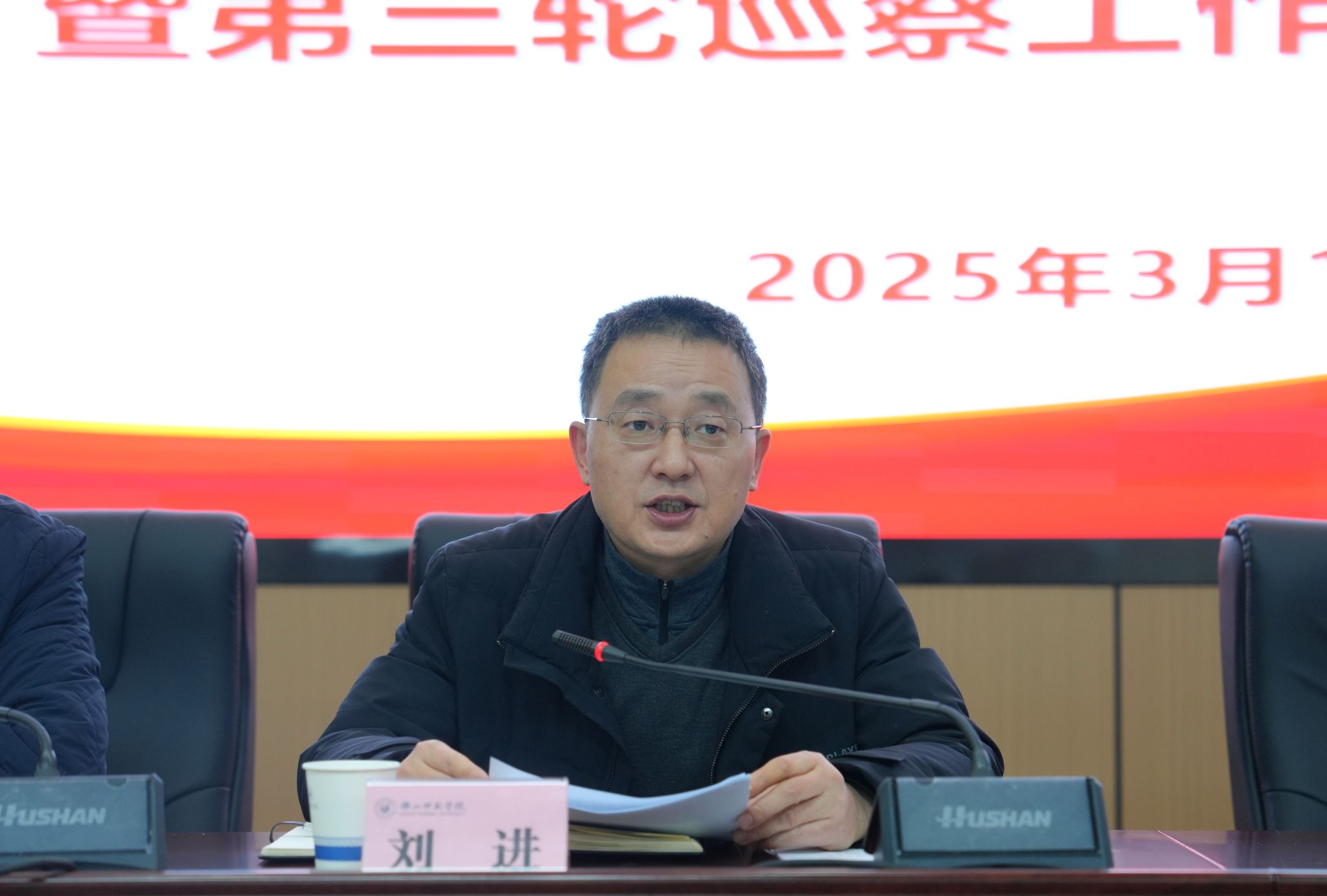 本网讯(文/许亚梅 图/杨爽)3月10日下午,党委2025年巡察工作会议暨第三轮巡察工作动员部署会在弘毅楼第三会议室召开。校党委书记、校长、巡察工作领导小组组长刘进,党委副书记、工会主席、巡察工作领导小组副组长陈立志,党委副书记、纪委书记、巡察工作领导小组常务副组长彭尚源出席会议,会议由彭尚源主持。