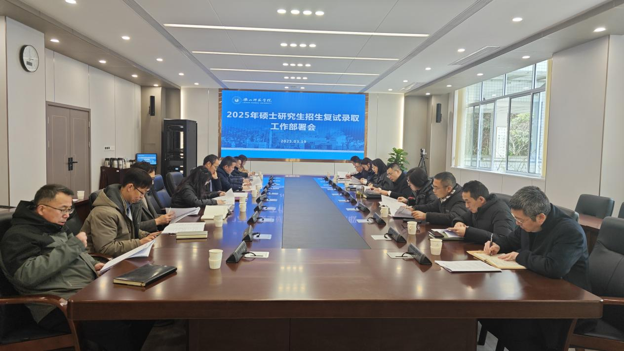 本网讯(文图/徐高羽)3月19日下午,学校在弘毅楼第二会议室召开了2025年硕士研究生招生复试录取工作部署会。学校党委常委、副校长李方裕,各研究生招生学院院长和相关职能部门负责人参加了会议。会议由李方裕主持。