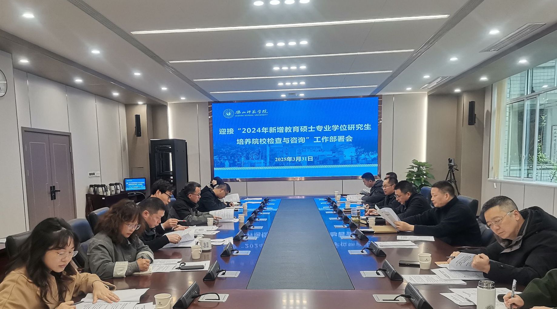 本网讯(文/杨文霞 图/李林)3月31日,学校在弘毅楼第二会议室召开迎接“2024年新增教育硕士专业学位研究生培养院校检查与咨询”工作专题会。会议由学校党委常委、副校长李方裕主持,党政办、研究生处、宣传部、人事部、信实处、后保部、计财处、教科学院、特教学院、文新学院、生科学院、材化学院负责人参会。
