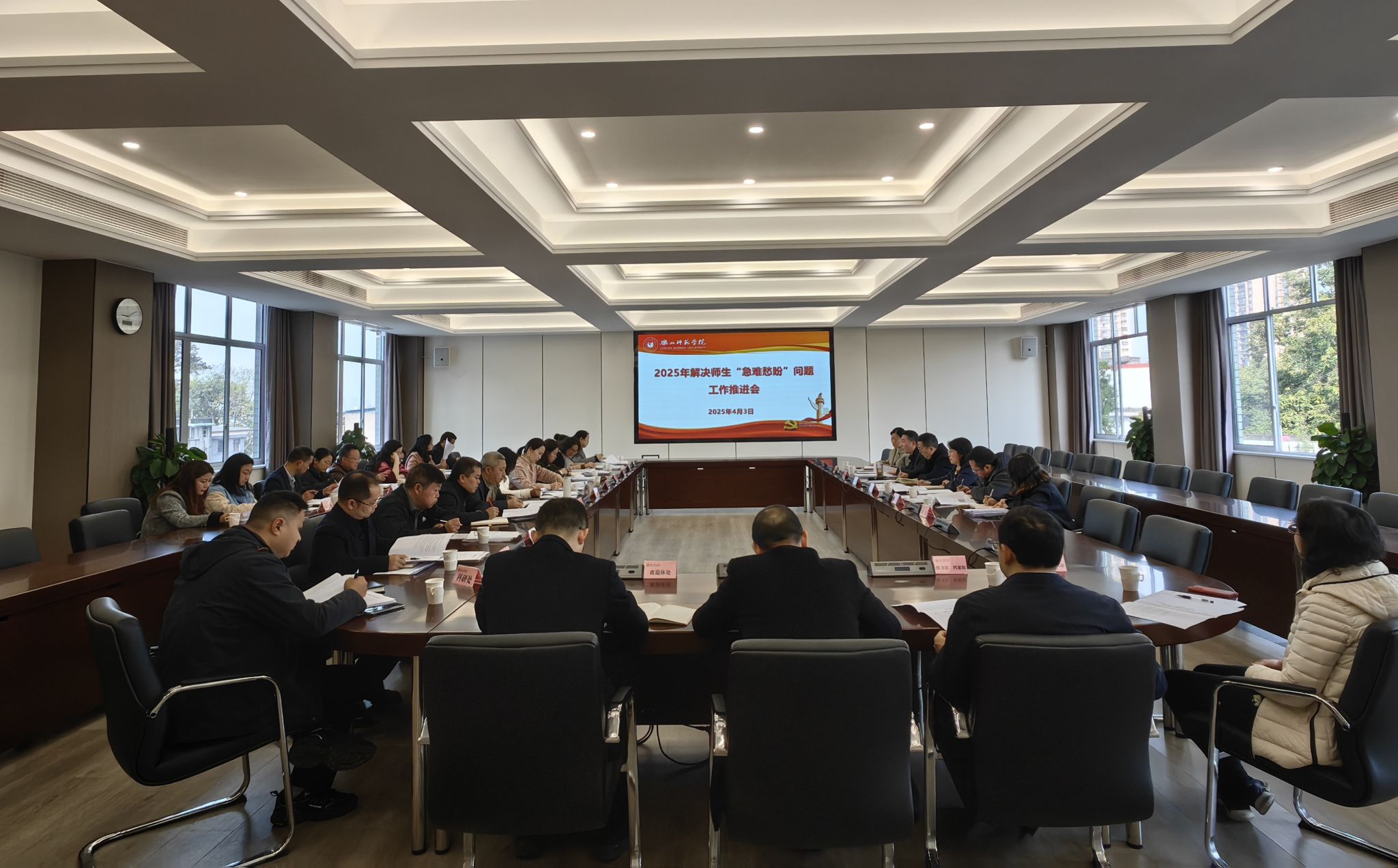 本网讯(文图/代青茹)4月3日上午,2025年解决师生“急难愁盼”问题工作推进会在弘毅楼第一会议室召开。校党委副书记、纪委书记彭尚源出席并讲话,机关党委委员、各职能部门负责人参加会议。会议由机关党委书记刘馨主持。