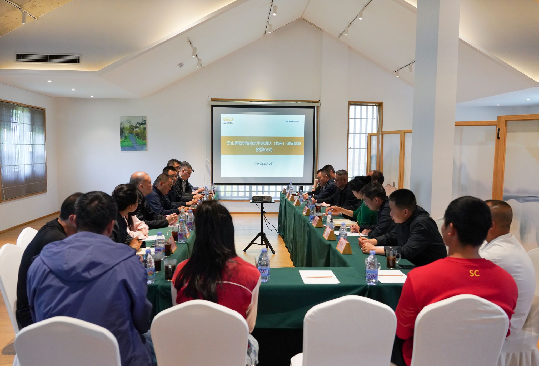 本网讯(文图/孟繁增)近日,乐山师范学院高水平运动队(龙舟)训练基地授牌仪式在青神县四川水上运动训练中心举行,这标志着学校在体育竞技人才培养和特色学科建设方面迈上新台阶。校党委书记刘进为基地授牌;校党委副书记、校长李方裕出席授牌仪式并讲话。立事达集团、汉阳湖训练基地、青神县教体局相关负责人以及学校党政办公室、党委宣传部、教学部、体育学院相关负责人参加活动。