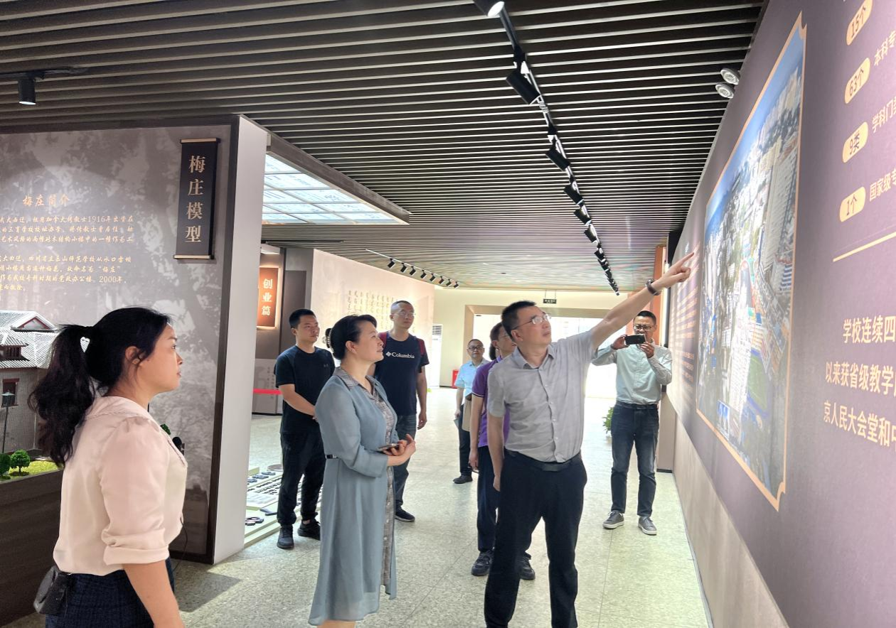 座谈会后,付琼一行在李方裕等领导的陪同下参观了我校校史馆,进一步深入了解我校办学历史与发展成就,重点了解学校在“1329” 发展战略引领下的人才培养、学科建设成果与社会服务成效。