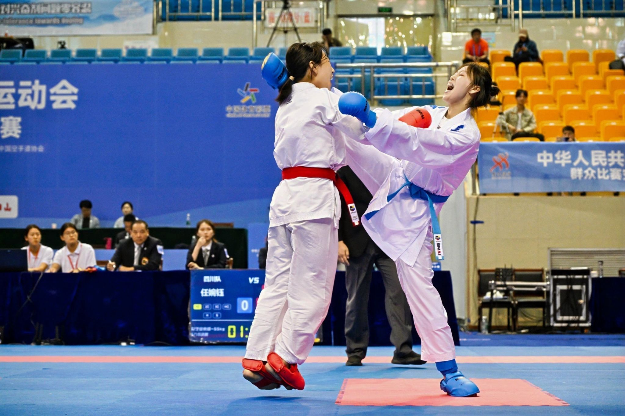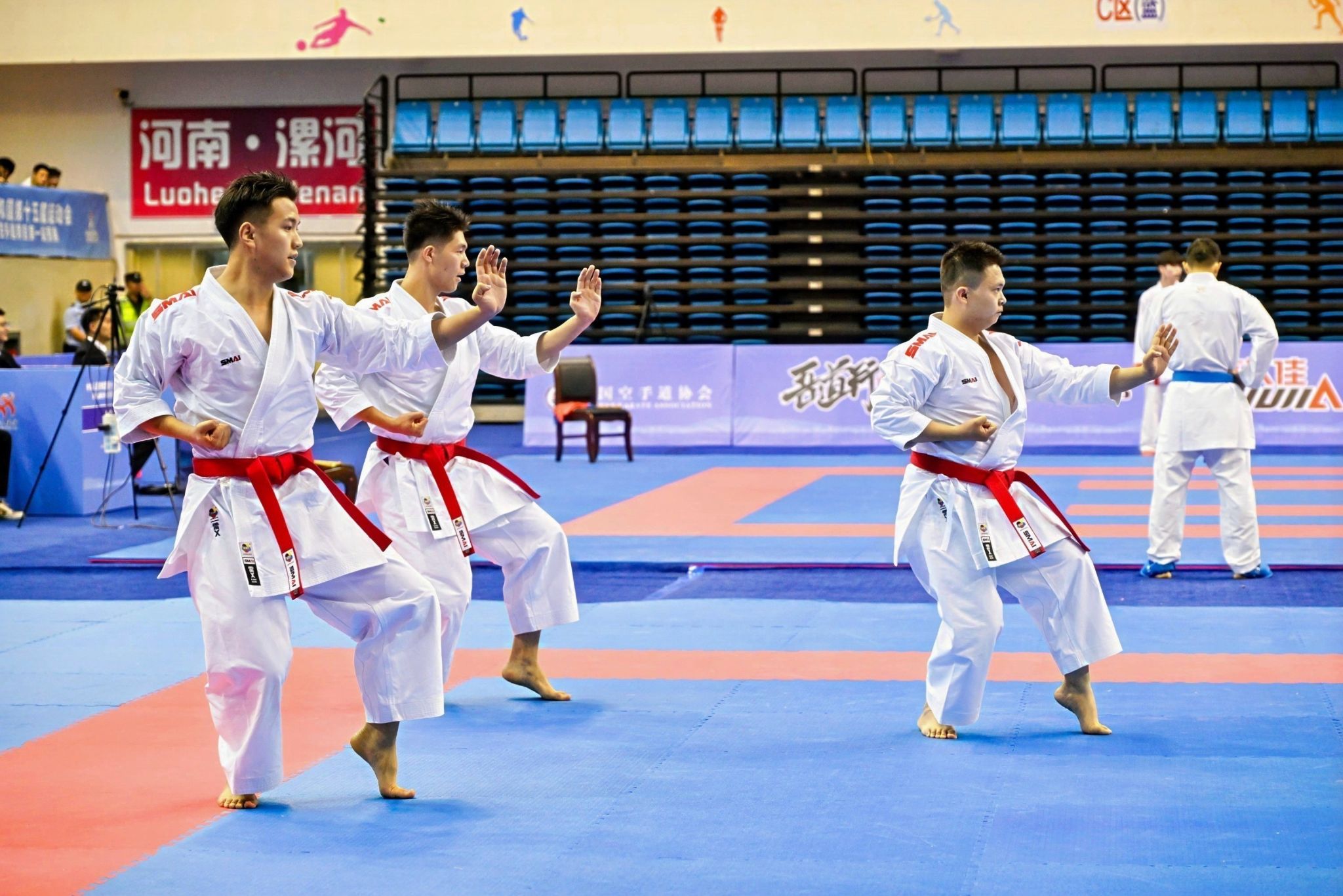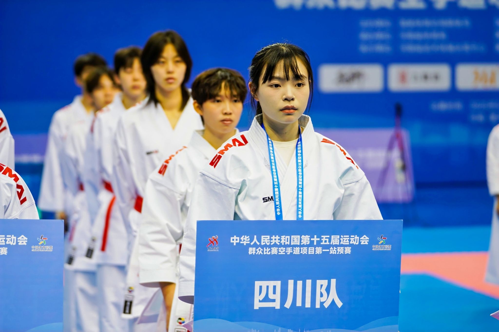 本网讯(文图/宋海宾)5月8日至13日,第十五届全国运动会群众比赛空手道项目第一站预赛在河南漯河体育中心火热开赛。本次赛事汇聚来自全国24个省、直辖市、自治区的259名顶尖选手,经过六天鏖战,我校体育学院学生陈琪、牟福馨、陈佳慧三名同学组成的团体型项目表现突出,最终成功斩获澳门总决赛入场券。这也是我校首次代表四川省出征国家级综合类运动会,并进入总决赛资格,开启了我校在体育运动项目上的新篇章。
