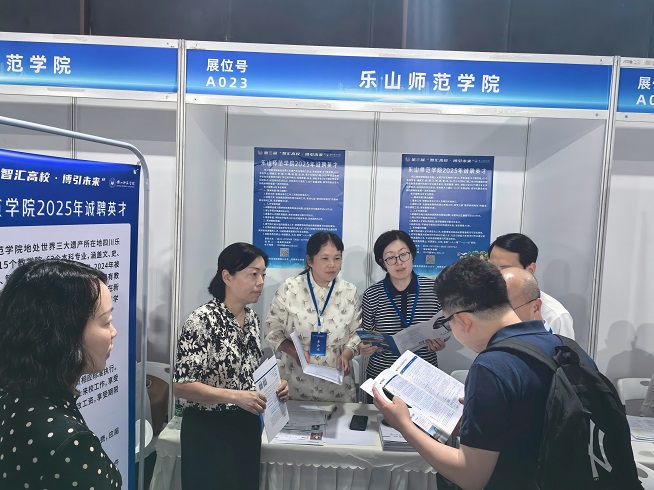 招聘会现场,我校展位吸引了众多优秀博士毕业生驻足咨询。陈范华亲自向应聘者详细介绍了学校人才引育政策、“金顶”计划团队建设及青年教师助教制等举措,重点解读了学校在人才待遇、科研奖励和成长成才等政策,她诚挚欢迎各位青年才俊加入乐师大家庭,共同书写乐师高质量发展的新篇章。