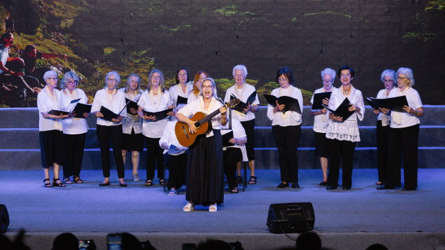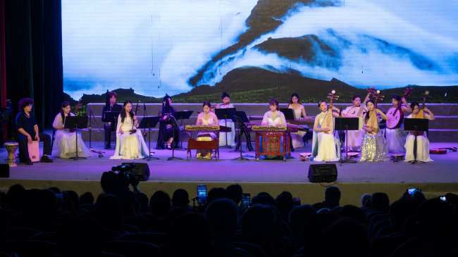 随后,来自乐山的多个合唱团体也纷纷登场献艺。睿享海棠之声合唱团、嘉州合唱团、汉嘉之声合唱团以及乐山师范学院的“海棠国乐”民族乐团和沫若艺术团分别表演了《幺儿嘞》《雪花的快乐》《异族风情》《敦煌》《飞跃大渡河》《我唱歌的理由有很多》等富有中国特色的合唱曲目。这些作品不仅展示了中国音乐的丰富多样性,还体现了乐山独特的地域文化与艺术风格,让奥地利的音乐家们对地域文化有了更直观的感知。