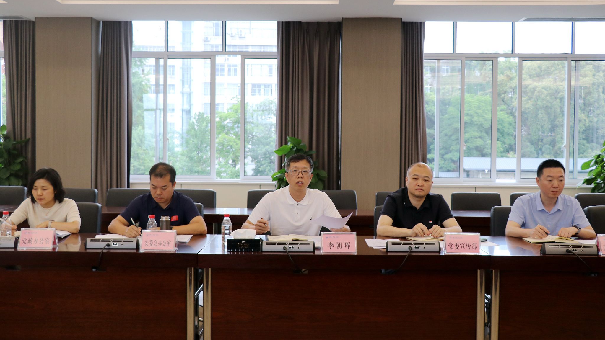 李朝晖强调,各部门要将校园安全工作始终摆在重要位置常抓不懈。一是要高度重视,压实责任。牢固树立学校“大安全”格局,有效发挥各部门工作协同作用,切实按照“三管三必须”和“谁主管谁负责”原则做好校园安全工作。二是要聚焦重点领域,全面排查整治。密切关注和抓实学生就业、学业、学生心理健康、教育教学、电信网络诈骗、消防、建筑物等重点领域安全工作,及时对存在的安全隐患进行排查整治。常态化做好安全教育引导,进一步提升安全教育质效。同时,做好值班值守和应急处置工作,明确工作流程,确保端午假期和敏感时间节点校园安全稳定。三是及时传达会议精神,抓好工作落实。要把安全责任落实到工作末端,确保“最后一公里”落细落实。