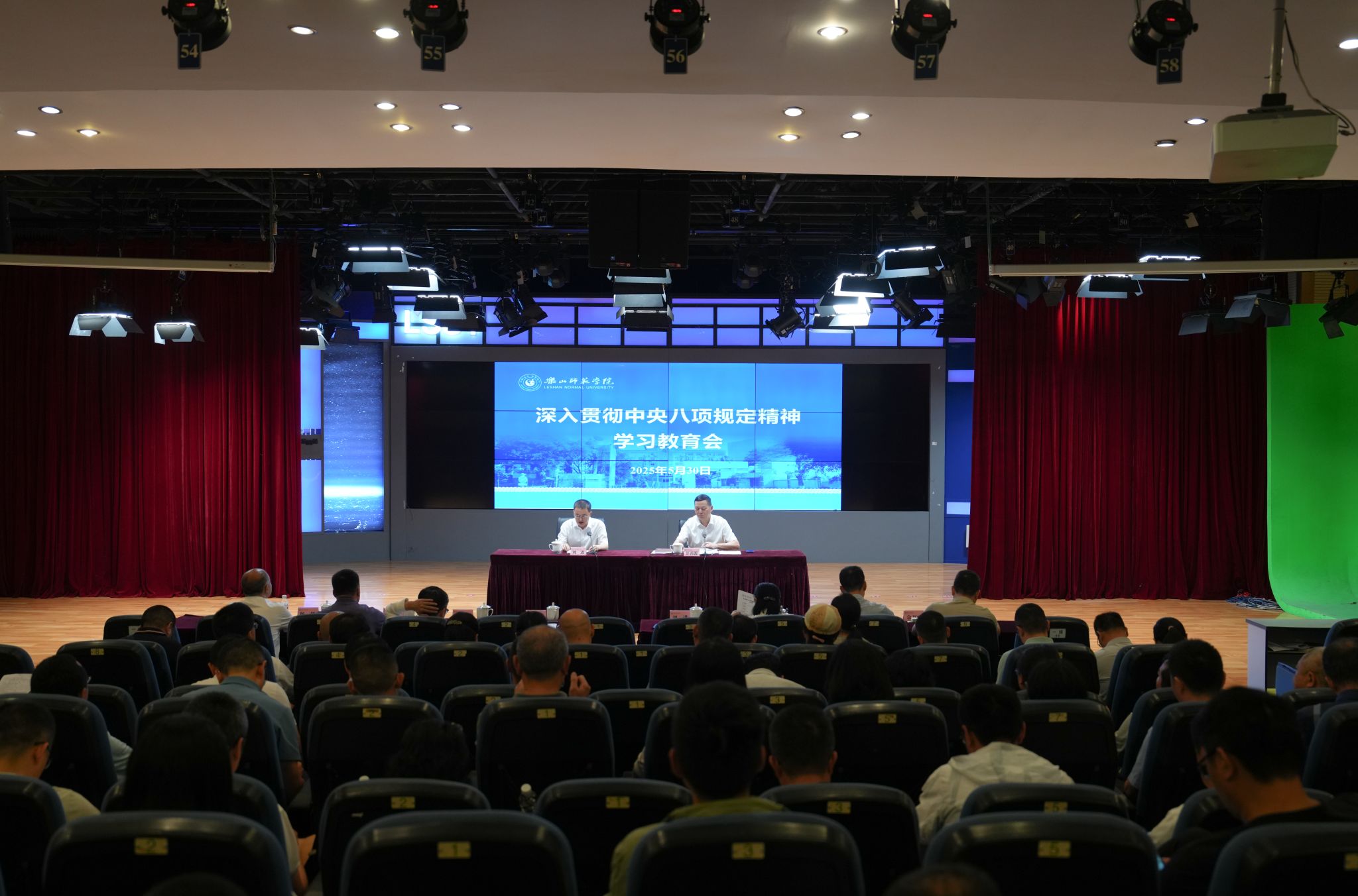 本网讯(文图/杨爽)为扎实推动深入贯彻中央八项规定精神学习教育走深走实,5月30日,我校在旷怡楼学术报告厅召开深入贯彻中央八项规定精神学习教育专题辅导报告会。校党委书记刘进主持会议并讲话。全体在家校领导、全体处级干部参加会议。