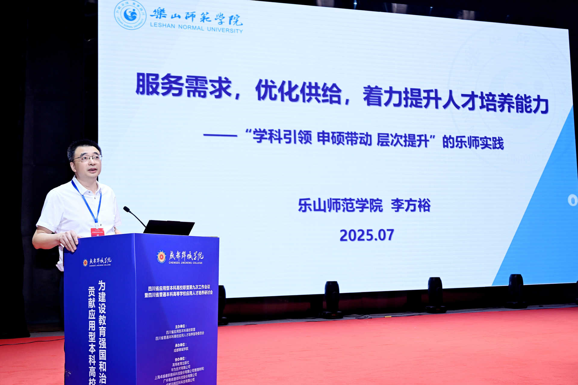 在主题报告环节,李方裕聚焦学科建设与硕士点申报核心命题,作了题为“服务需求,优化供给,着力提升人才培养能力——‘学科引领 申硕带动 层次提升’的乐师实践”的主题报告,系统阐述了我校在应用型人才培养上的深度思考与创新实践。