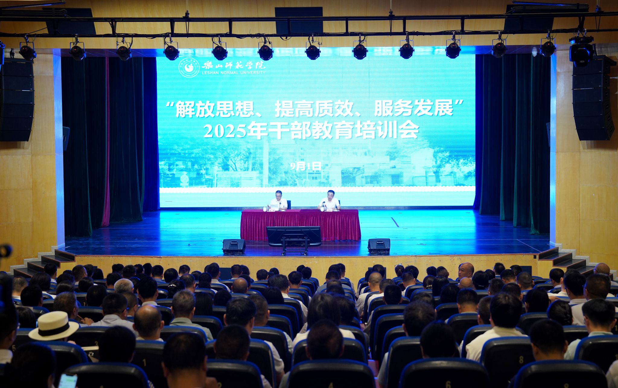 本网讯(文图/杨爽)9月1日—3日,我校在实训楼多功能厅举办2025年干部教育培训会。本次培训围绕学校“1329”发展战略,紧扣“两上一升”目标任务和“113”高质量发展思路,着力提升干部政治素养、战略思维和管理能力,为全面建设省属一流大学和科学谋划“十五五”规划奠定坚实基础。全体校领导,处级干部,优秀科级干部代表,“双挂”人员以及省部级科研平台负责人通过集中授课、分组研讨和经验交流等形式参加培训。