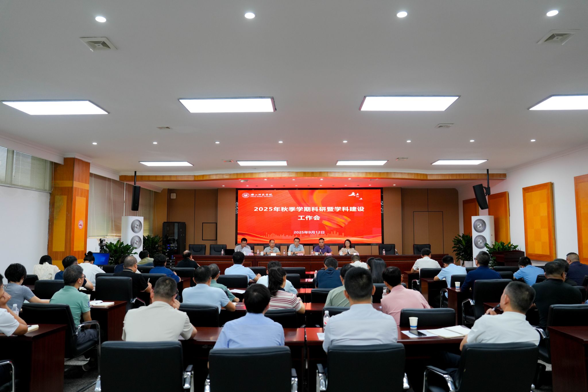 农向就学科建设现状予以通报,对下一步重点工作作出安排部署,对远期规划作了详细说明。科研处副处长胡育通报了2025年全校科研任务完成情况,包括省部级及以上项目立项、到账经费、学术论文、专著、成果转化等方面的进展数据;科研处副处长段玄锋就当前紧急重要任务和下半年工作安排作了具体说明。