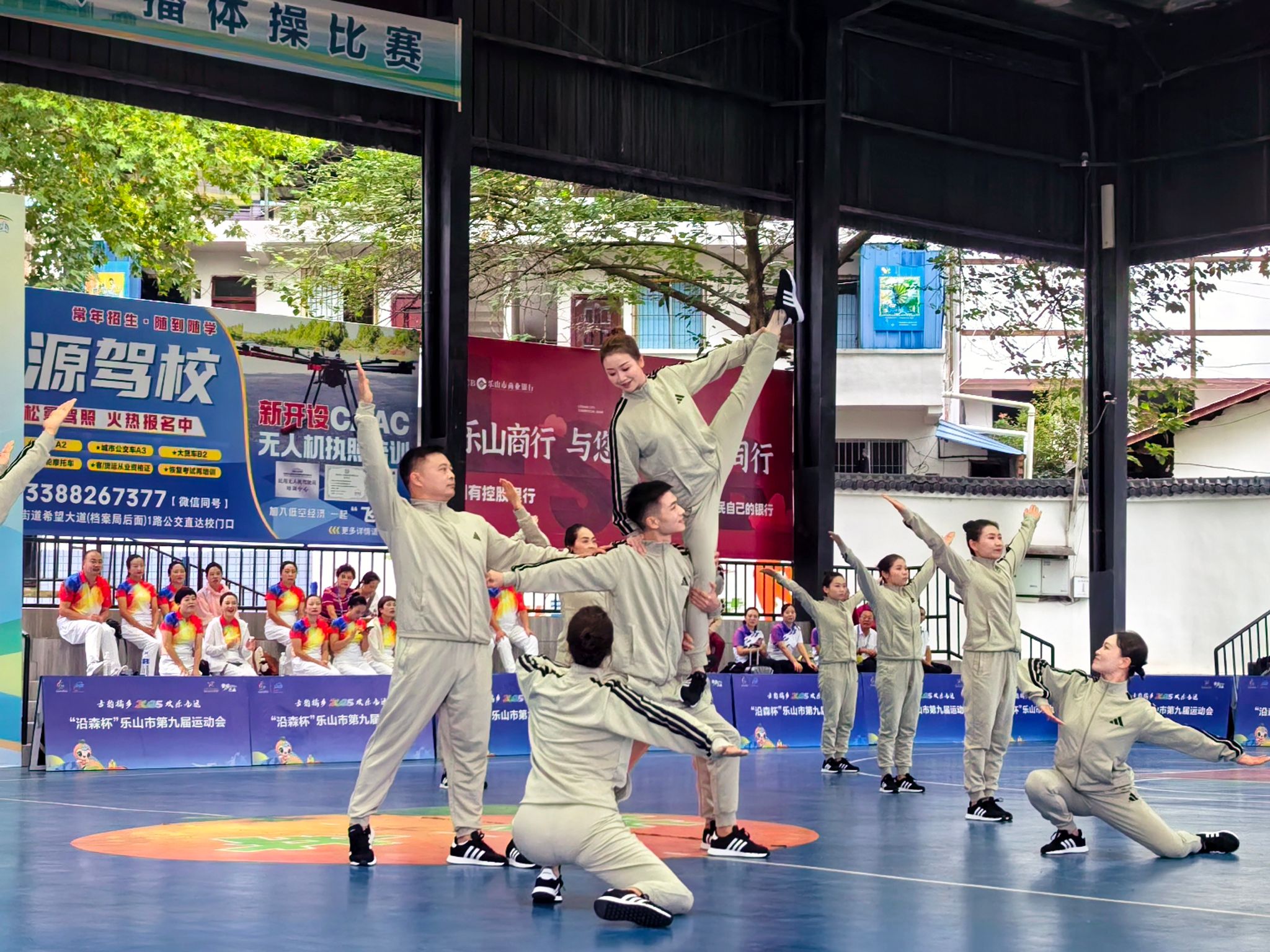 本次比赛由乐山市人民政府主办,乐山市体育局、井研县人民政府承办,吸引了全市多支队伍参赛。学校高度重视师生日常体育锻炼,每年举行校运会,为组织参加本次市运会,于4月举行了全校性的广播操比赛,并选派获得校运会冠军的音乐学院分工会代表学校参赛。在学校校工会的精心组织与大力支持下,音乐学院根据市运会比赛规则迅速调整重组参赛队伍。音乐学院院长周特古斯担任教练,学院党委书记宋军、副院长吴映春上阵参赛,以实际行动激发团队斗志,舞蹈专业教师带领队员从动作规范性、节奏把控到团队整体配合反复打磨、精益求精。备赛期间,队员们利用每天中午休息时间刻苦训练,只为在比赛中能够代表学校展现出最佳的乐师风采。
