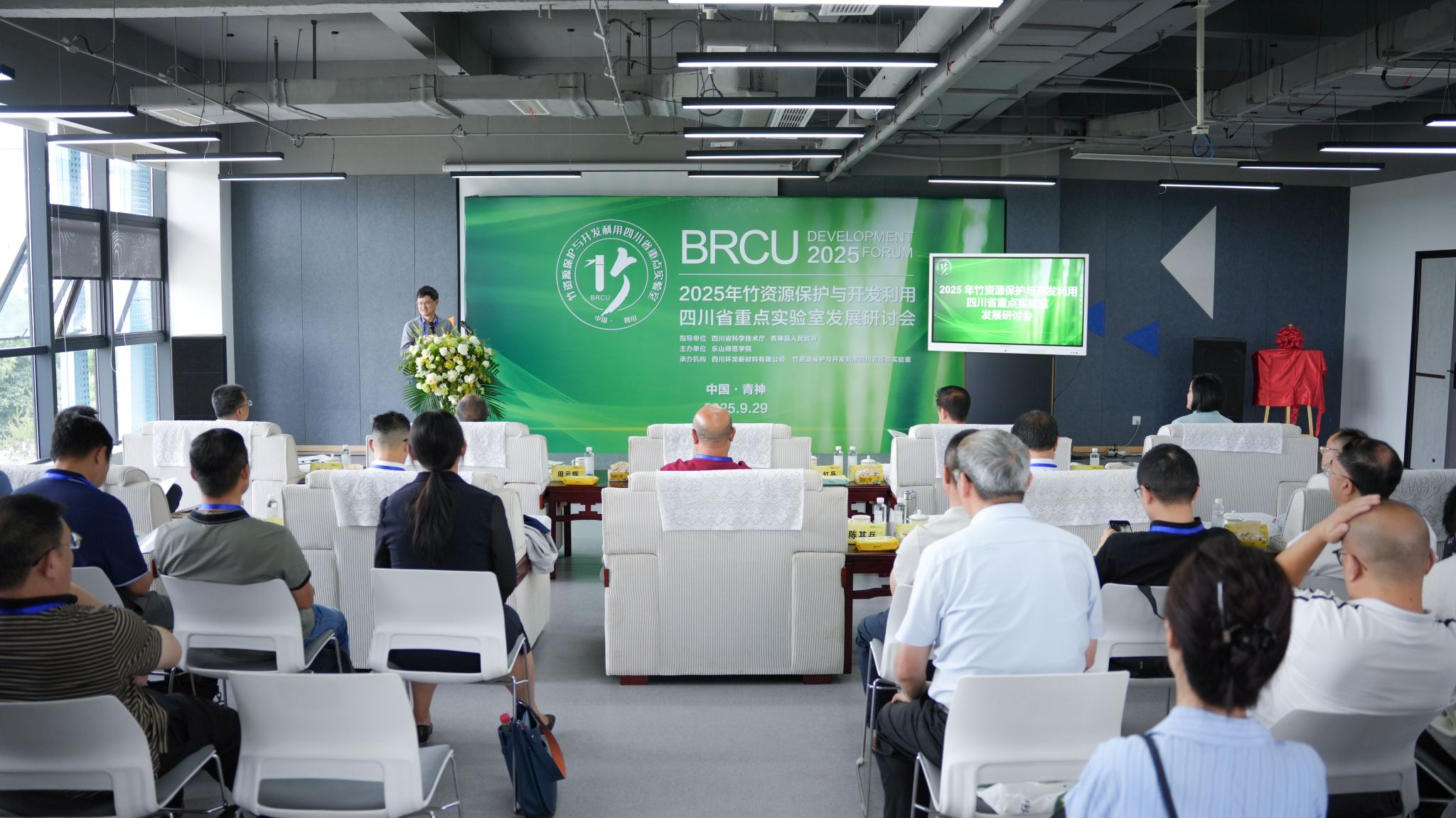 本网讯(文图/杨爽)9月29日,2025年竹资源保护与开发利用四川省重点实验室发展研讨会在眉山市青神县召开。中国科学院院士、武汉生物技术研究院院长舒红兵教授,中国林业科学院杨忠岐教授出席开幕会。四川省科技厅一级巡视员、四川省科技咨询委员会执行主任田云辉出席开幕会并作专场讲座。校党委副书记、校长李方裕出席开幕会并致辞,校党委常委、副校长江滔出席并主持开幕式,校党委常委、副校长农向出席开幕会。眉山市委常委、副市长贾生甲,青神县委副书记、县长邱磊出席开幕会并致辞,四川环龙新材料有限公司董事长沈根莲出席开幕会并致辞。