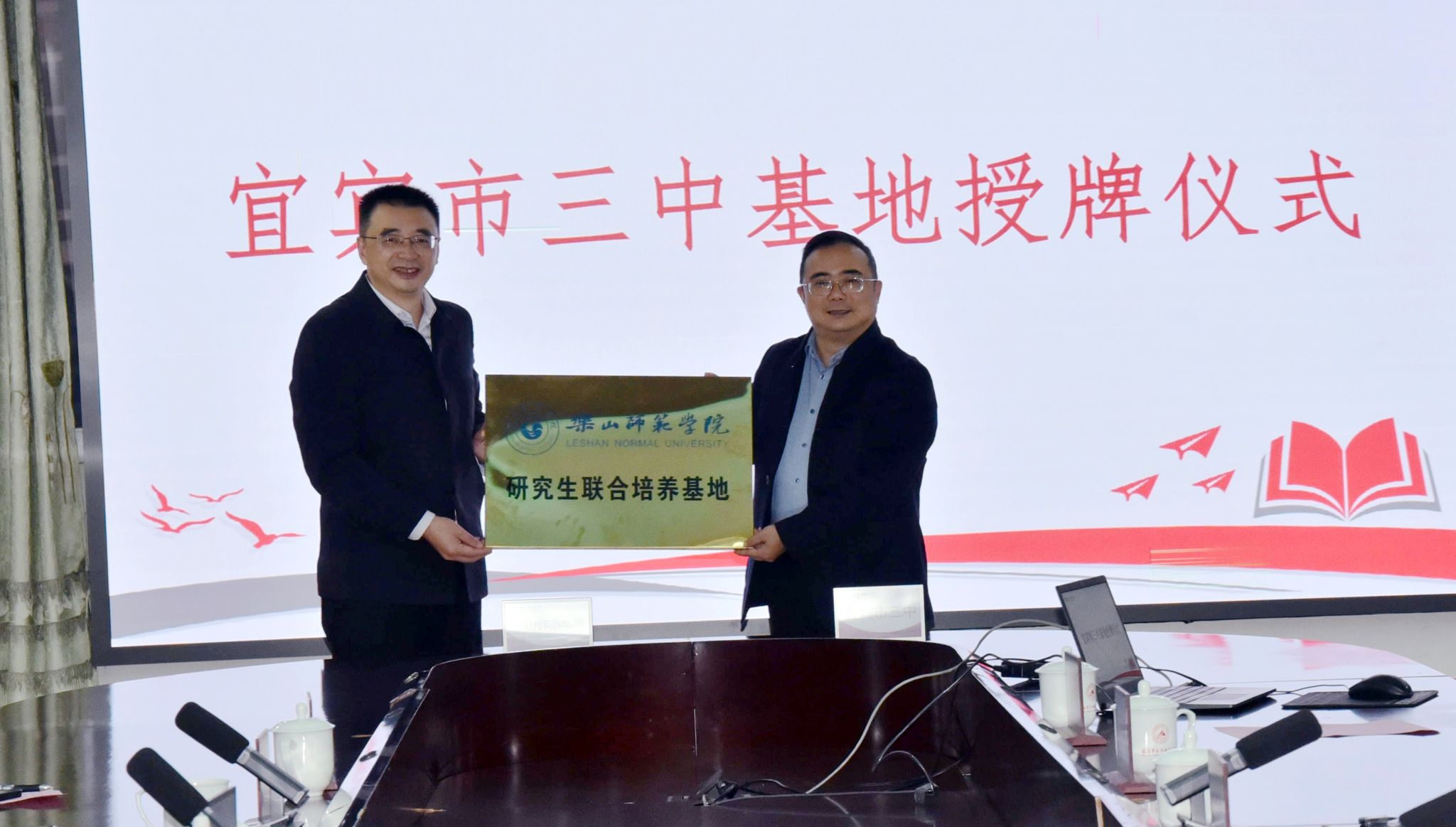 本网讯(文/周彦杉 图/贾洪鉴)11月12日,乐山师范学院与四川省宜宾市第三中学校共建研究生联合培养基地授牌仪式成功举行。乐山师范学院党委副书记、校长李方裕,党委常委、副校长农向,宜宾三中党委副书记、校长李昊,党委委员、副校长严松等出席仪式,共同见证两校在研究生培养领域深度协作的落地实施。