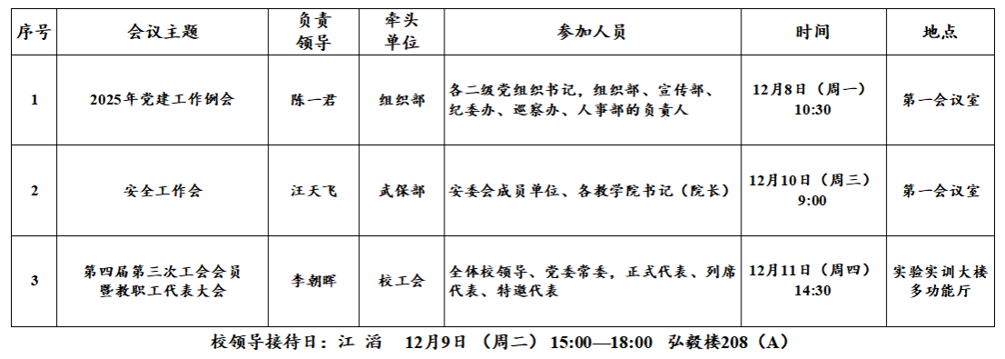第14周(12月8日—12月14日)主要会议和活动安排