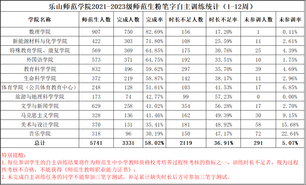 附件:乐山师范学院师范生2024-2025学年第1学期粉笔字自主训练情况统计表(第1-12周)