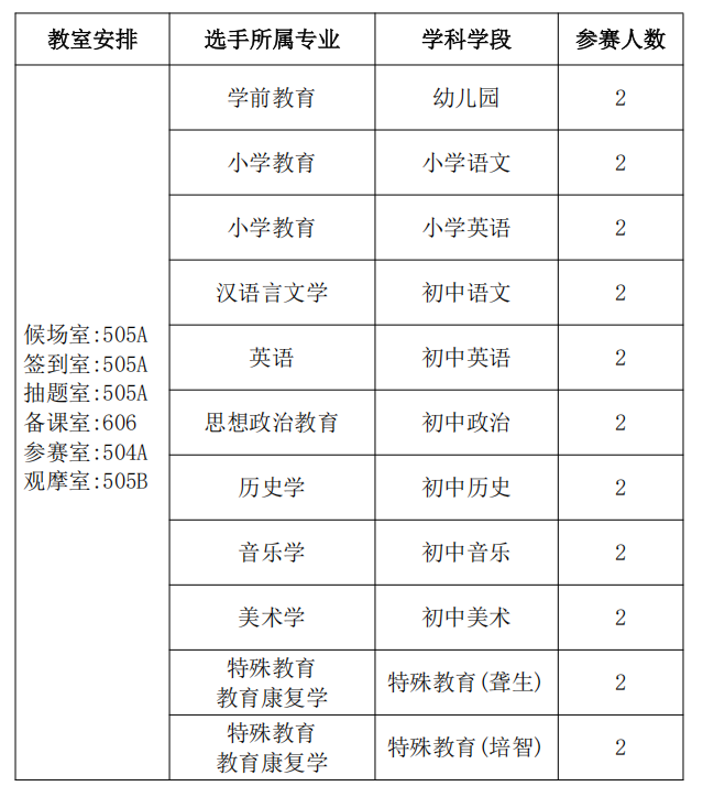 1.我校学前教育、小学教育、汉语言文学等20个专业原则上选派2022级在校学生(历史学2023级),参赛专业详见下文“分组与教室安排”;