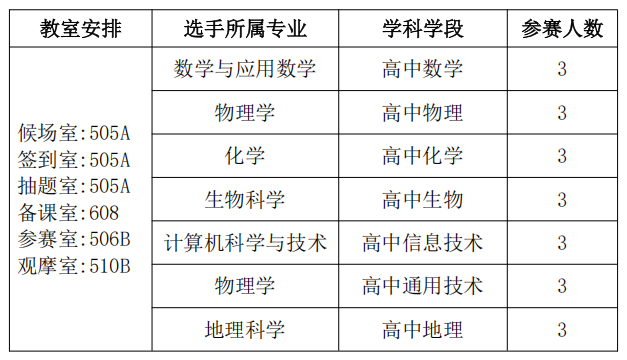 六、竞赛时间、选手分组与教室安排