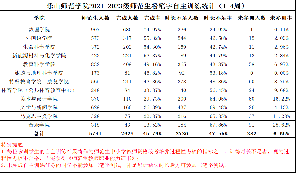 附件:乐山师范学院师范生2024-2025学年第1学期粉笔字自主训练情况统计表(第1-4周)