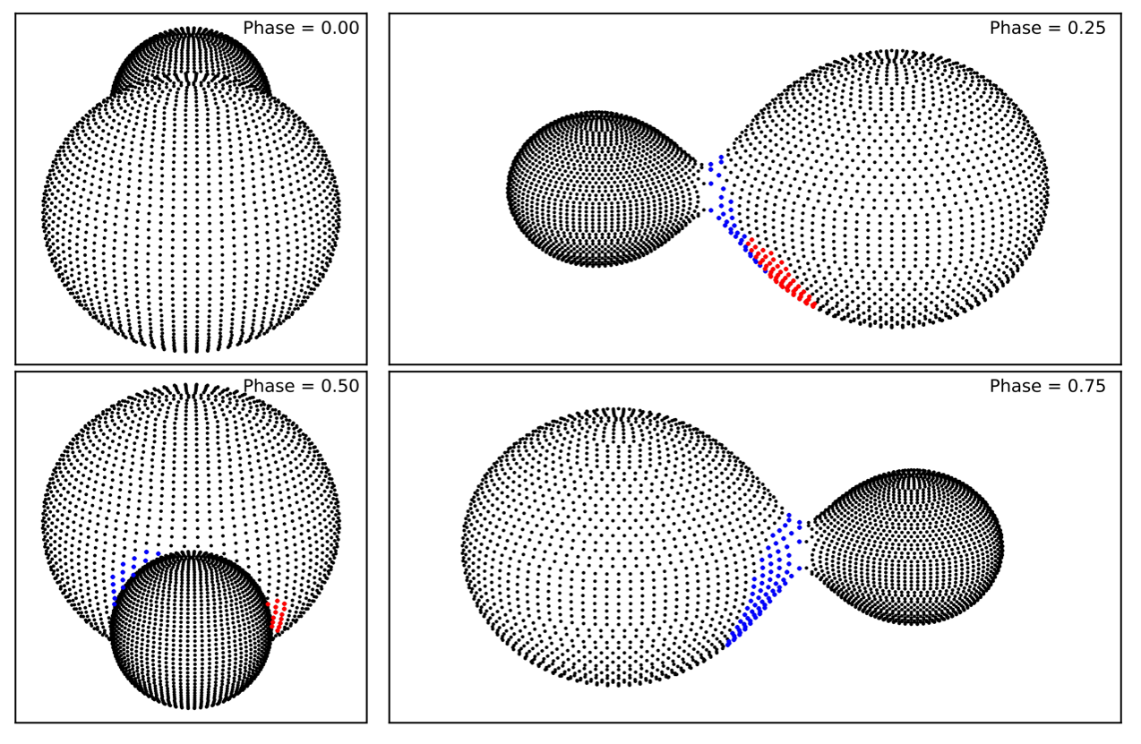 研究团队综合利用TESS空间望远镜、国家天文台兴隆观测站中小口径望远镜以及国家重大科技设施LAMOST巡天数据,对相接双星V0554 Dra开展了首次多波段光变曲线与视向速度曲线联合解轨分析。研究结果表明,V0554 Dra是一颗W次型浅度相接双星系统,相接度约为18%,并在两子星连接处发现明显的局部高温区域,推测为物质由小质量星向大质量星转移所形成的热斑结构。