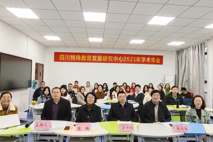 本网讯(文/陈自力 图/梁悦) 11月19日上午,由四川特殊教育发展研究中心和学校特殊教育学院联合主办的四川特殊教育发展研究中心2021年学术年会正式开幕,本次年会以“融合、创新、发展”为主题。因疫情原因,年会以线上线下相结合的方式举行,主会场设在学校特教大楼A栋503智慧教室,学校副校长李方裕、学科建设处处长陈天柱,四川特殊教育发展研究中心主任、学校特殊教育学院院长(执行)张梅,特殊教育学院副院长魏欣,四川特殊教育发展研究中心副主任、特殊教育学院专任教师梁剑博士、郭玲博士,以及特殊教育学院、文学与新闻学院、人工智能学院的部分教师参加了开幕式。