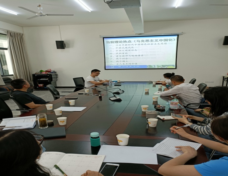 学术沙龙活动中,思政中心副主任韩俊博士就“马克思主义理论前沿问题”进行了分享。韩俊博士长期在武汉大学学习,受到多位博士生导师亲自指导,吸取了名家老师的学术观点,对其自身有较大的充实和提高。韩博士对近期习近平总书记在中国人民大学考察时的重要讲话进行了分析,归纳提炼了总书记讲话的重要精神,把握了领袖讲话的重要指引方向,同时对马克思主义中国化、党史党建、政治经济学、思想政治教育等领域的学术前沿问题进行了归纳提炼。沙龙第二阶段,李军老师分享了我校课程思政建设的思考,主要从课程思政教学存在的误区、原因分析、高校课程思政指导纲要学习、如何结合我校办学定位开展工作、课程思政建设形式、质量评价观测点等六大方面进行了研究分享。