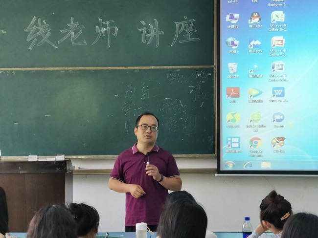 本网讯(文/王晓倩、图/夏皓菥)5月10日上午10点,马克思主义学院在行知楼125教室开展一线老师讲座。本次讲座由乐山市实验中学优秀班主任杨溢老师主讲。讲座由我院党总支副书记钟永淑老师主持。副院长蒋政老师和非毕业年级全体学生参加。