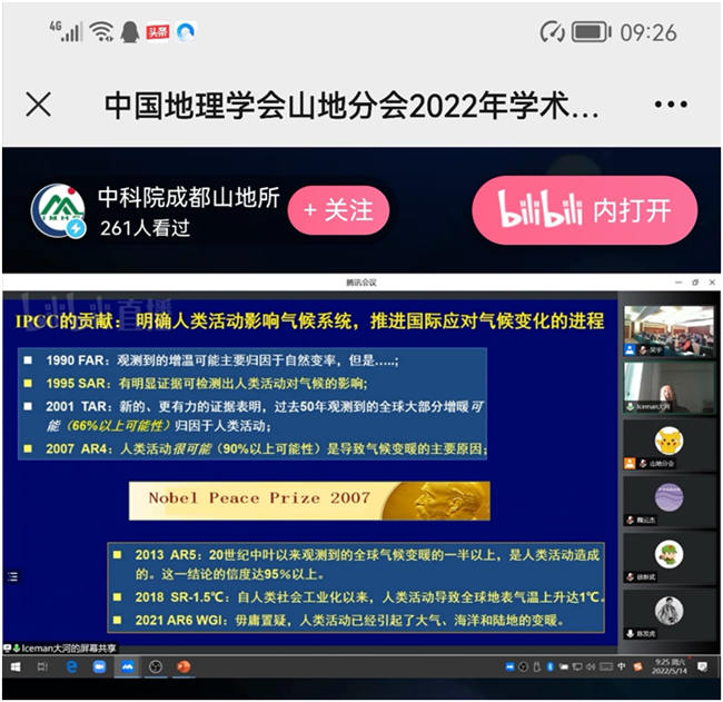 本网讯(图、文/薛文娟)5月13日至15日,由中国地理学会山地分会主办、云南丽江玉龙雪山冰冻圈与可持续发展国家野外科学观测研究站承办、云南大学国际河流与生态安全研究院等多家单位协办的中国地理学会山地分会2022年学术年会在云南丽江玉龙雪山冰冻圈与可持续发展国家野外科学观测研究站举办。本次年会的主题是“山区地域系统与可持续发展”,旨在促进新时代地理学的创新发展,更好地服务于国家山区高质量发展的战略需要。旅游学院院长郭剑英和余琴、孟凡帅等教师在线参加了本次会议。