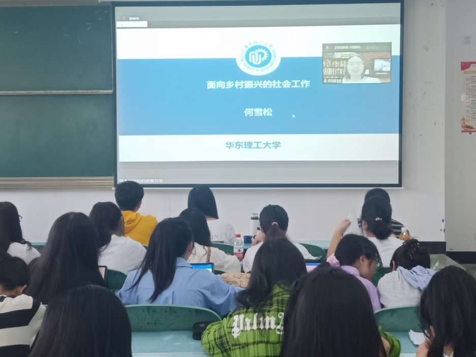 本网讯(文/郑霖、图/丁木乃)2022年5月20日下午,全国MSW教指委委员、华东理工大学社会与公共管理学院院长、中国社会工作教育协会副秘书长、中国社会学学会理事何雪松教授通过腾讯会议在行知楼125教室为法学与公共管理学院社会工作专业师生带来“面向乡村振兴的社会工作”的专题学术讲座。讲座由法学与公共管理学院党委书记程勇教授主持,社工系教师及2019级、2020级和2021级社会工作专业聆听了此次讲座。