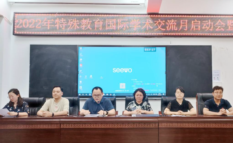 本网讯(文图/兰芹)6月2日晚,与美国罗切斯特大学多名专家联合举办的学校2022年特殊教育国际学术交流月在特教大楼A栋406培训室启动,学校国际合作与交流处处长于科先、特殊教育学院全体班子成员和100余名师生参加了启动会。启动会由特殊教育学院副院长魏欣主持。