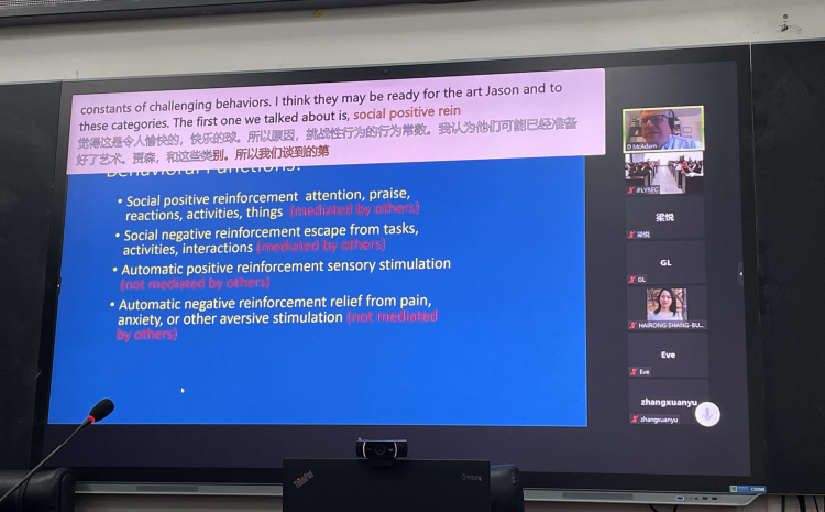讲座结束后,学生们积极思考,提出问题,与远在美国的专家进行热烈的线上交流,加深对应用行为分析方法的进一步了解,学习了干预孤独症儿童挑战性行为的方法,提升了干预技能。