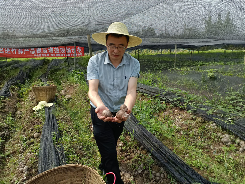 本批示范性竹荪培育始于3月19日,基料为竹边角料打磨的竹粉,完美的诠释了变废为宝,以及由此建立的竹产业的闭环发展和经济效益。副校长李方裕,林业局钟小川书记,四川德顺源食品股份有限公司董事长罗志义等市领导和专家,带着采摘工具,共赴基地见证竹荪培育成果。