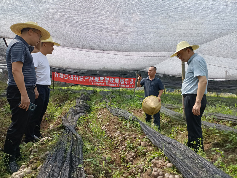 本网讯(文、图/廖菲)6月19日,副校长李方裕,科研部部长农向、副部长周勇,生命科学学院副院长伏秦超,市林业和园林局党组书记钟小川、调研员郑伦彬,市农业农村局经作站站长潘虹宇,马边县委副书记魏辉文,副县长曲别布日,林业局局长朱洪,沐川县林业局局长徐杰,四川德顺源食品股份有限公司董事长罗志义一行参加了 “竹燕窝竹荪培育示范基地”竹粉基料培育竹荪成效现场会。