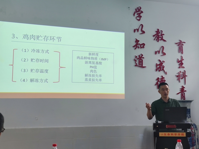 首先,王钢代表学校对出席本次年会的四川食非食餐饮管理有限公司的嘉宾表示诚挚的欢迎,随后从实验室建立、团队构成、研究进展等方面对工程中心进行了介绍,强调工程中心的工作主旨就是推峨眉黑鸡和沐川乌骨黑鸡等地方品种,实行生态养殖和资源化利用相结合,实现种养生态循环的绿色养殖方式,并不断探索提高地方品种鸡肉质的方法,结合乡村振兴,服务地方经济。随后,喻世刚博士就工程中心取得的学术成果进行了总结并就如何改良鸡肉肉质作了学术汇报,沈雪梅博士就工程中心以后的研究工作作了系统的规划。最后,参会人员一并参观了工程中心实验室,王钢介绍了实验室构成和主要的先进仪器,并表示工程中心有信心并且有实力做出更优秀的学术成果和先进技术推广,追求更深入的校企合作。