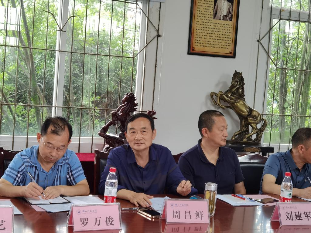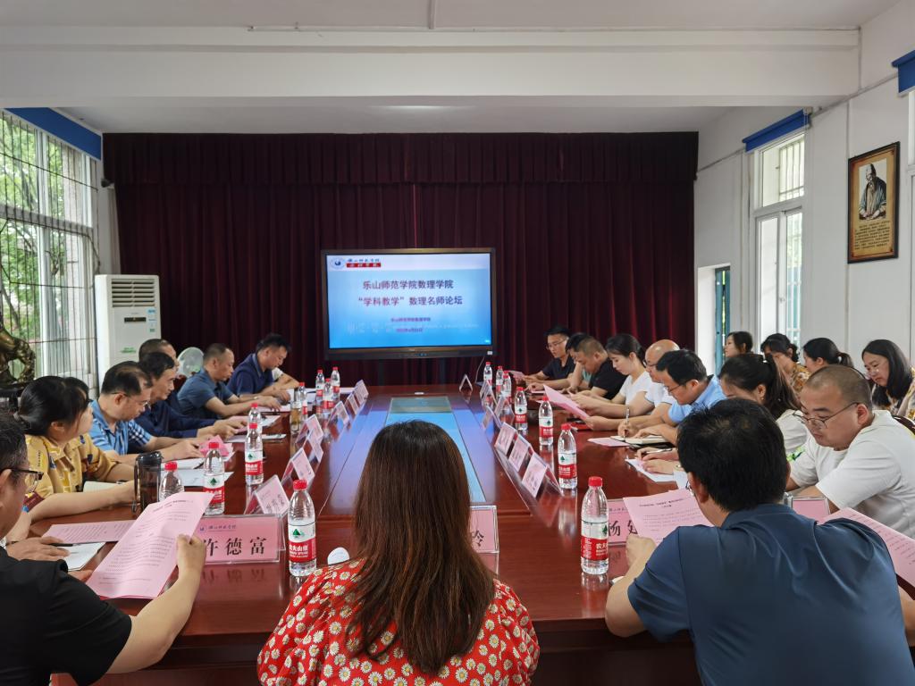 本网讯(文、图/肖啸)为贯彻落实学校“1329”发展战略,对标竞进、争创一流,6月23日下午,数理学院举办了“学科教学”数理名师论坛。本次数理名师论坛为首届举行,参会人员包括成都市石室中学正高级教师周昌鲜教授,沫若中学副校长罗万俊,嘉祥集团教科院高中物理中心组组长向国兴,嘉祥外国语高级中学教务处副主任张勇,乐山市教科所物理教研员徐艺,乐山一中、乐山实验中学、沫若中学等学校的部分物理学科教师,数理学院党政领导全体成员、物理学科全体教师和数学学科教学法教师。论坛由数理学院副院长黄凯主持。