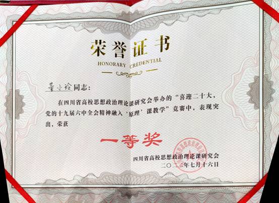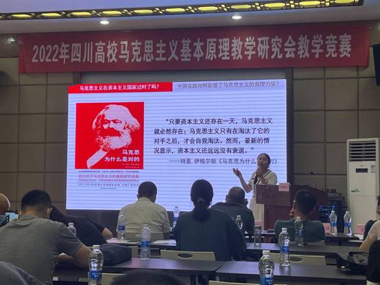 年会主要包括主题报告、研讨交流和教学竞赛三个部分。在主题报告部分,通过线上参会的方式,艾四林教授与孙熙国教授分别围绕“原理课如何讲好‘理’”、“马克思主义基本原理的学科对象与理论体系”的主题展开精彩发言。在研讨交流部分,四川大学、电子科技大学、西南财经大学等六所高校的领导和专家分别结合各自学校实际,围绕“马原课联动教学模式的探索与实践”、“‘以学生为中心’的思政课教学路径”、“《马克思主义基本原理》课教学的经典融入问题”等主题交流分享了“原理课”教学特色经验和目标规划。在教学竞赛部分,我校马克思主义学院专任教师董小玲与来自全省各高校的20余位老师参加了“喜迎二十大,党的十九届六中全会融入‘原理’课教学”竞赛,凭借《马克思主义过时了吗》为主题的教学展示荣获一等奖。