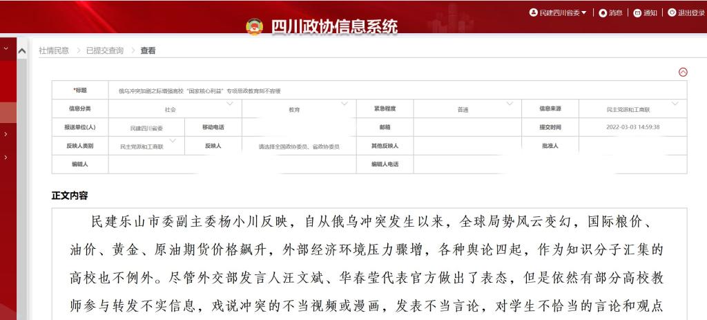 《俄乌冲突加剧之际增强高校“国家核心利益”专项思政教育刻不容缓》于3月7日,省政协采用报送全国政协第183期。